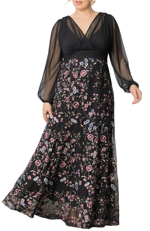 Moonlit Garden Isabella Embroidered Mesh Gown - Plus