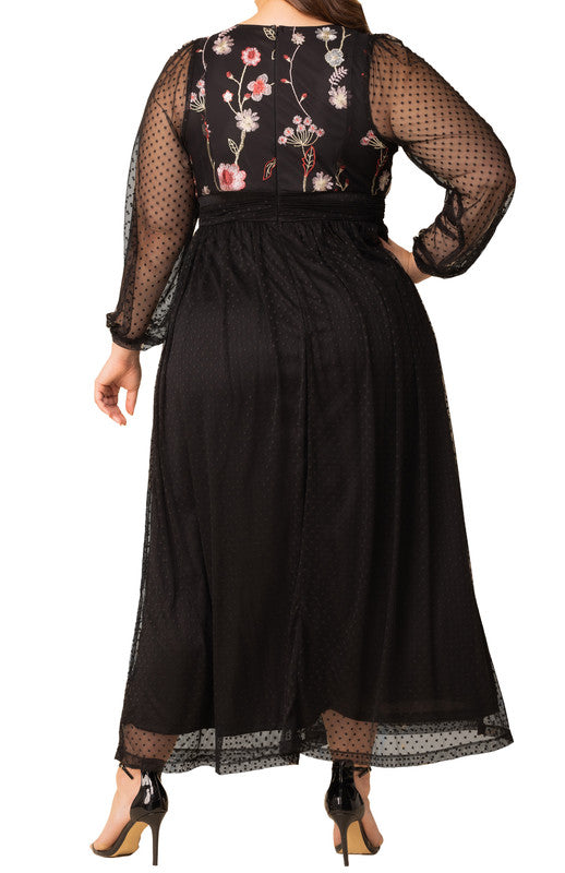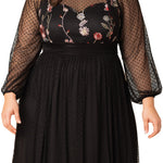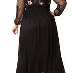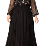 Step into timeless elegance with the Plus Size Mystique Mixed Media Evening Gown. Designed to flatter your curves, this full-length dress features a delicate embroidered mesh bodice with an illusion sweetheart neckline for a romantic touch. The long blouson sleeves add ethereal charm, while the ruched waistband cinches for a stunning silhouette. A center back zipper ensures a seamless fit.