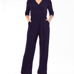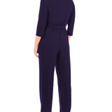 Navy 3/4 Sleeve Belted Jumpsuit – Dressbarn