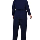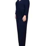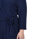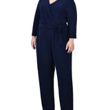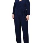 Navy 3/4 Sleeve Belted Jumpsuit - Plus – Dressbarn
