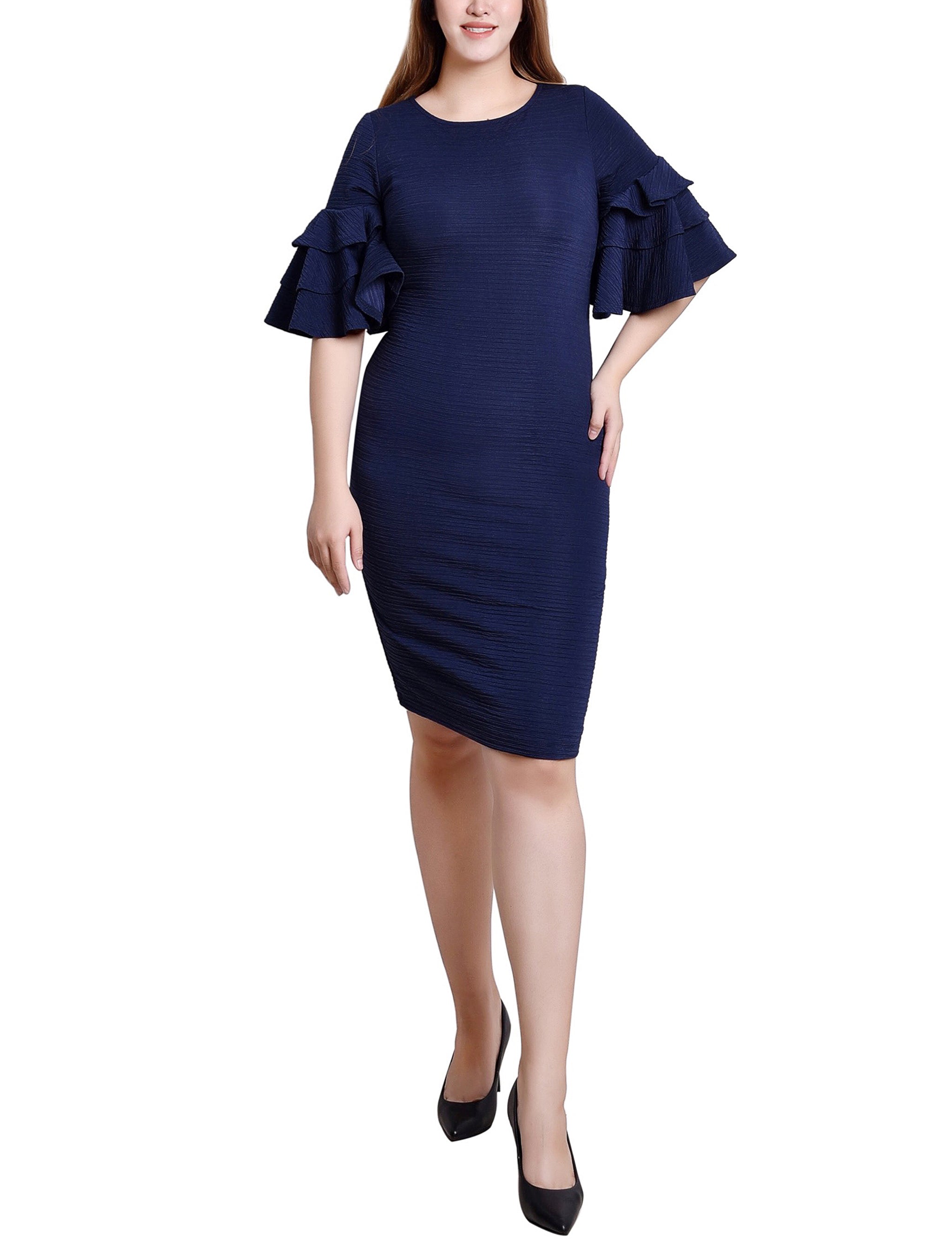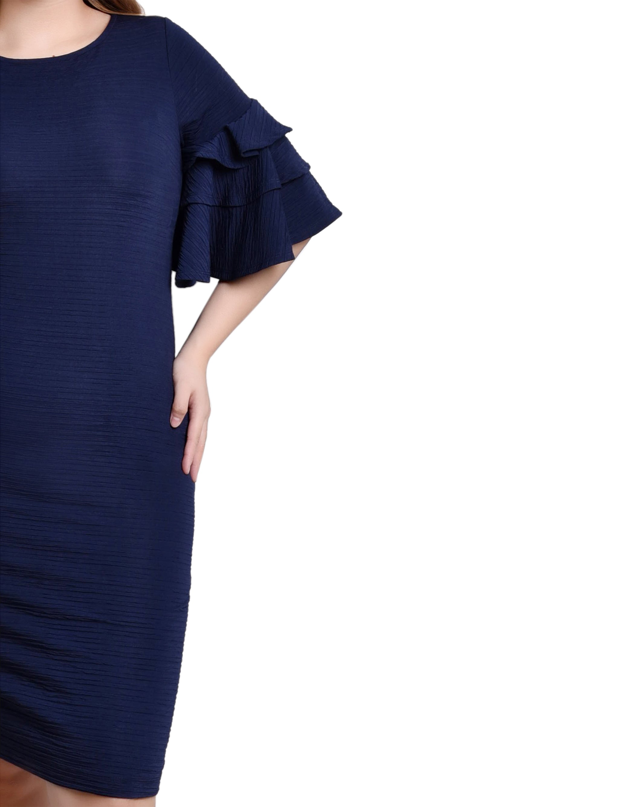 This textured knit dress will create a real wow this season whether headed to a party or that special event.