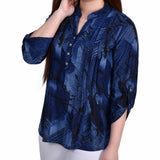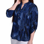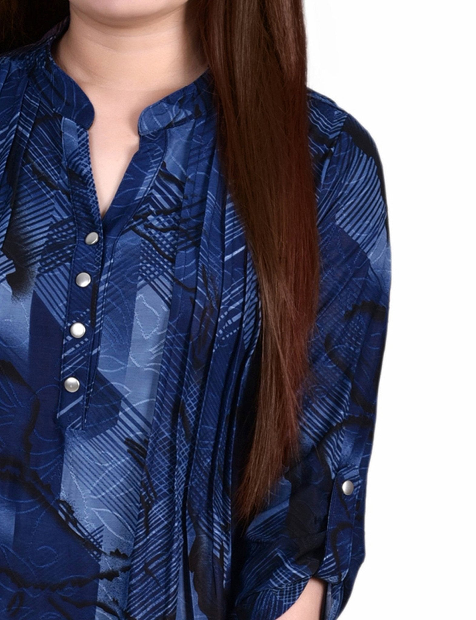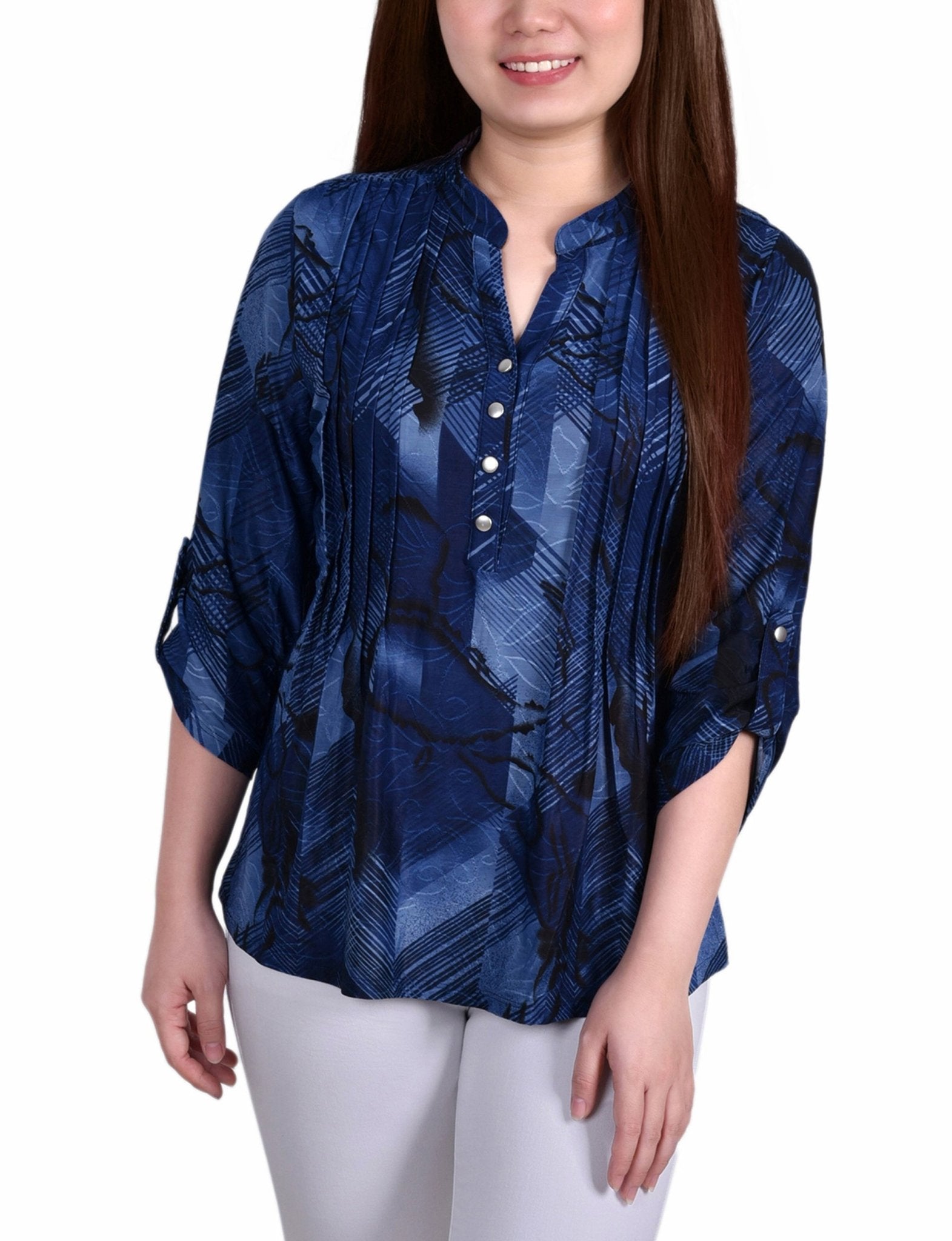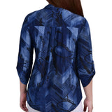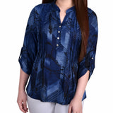 With 3/4 roll tab sleeves and a button up detail, this top is flattering on any woman.