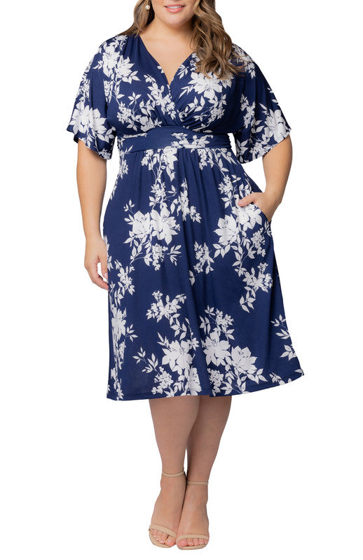 You'll feel beautiful in our plus size Gia Midi Dress. This flattering stretch jersey A-line dress is designed with a surplice bodice, short dolman sleeves, and pockets. Available in women's plus sizes.