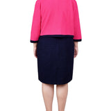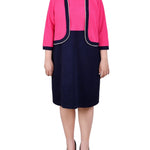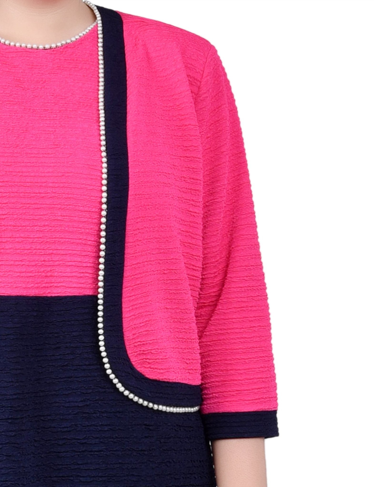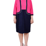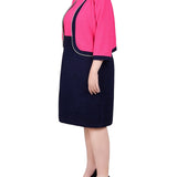 Navy Havana Pink 3/4 Sleeve Textured Knit 2 Piece Dress Set - Plus – Dressbarn