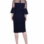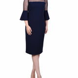 Navy Illusion Neck Scuba Dress - Petite – Dressbarn