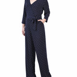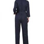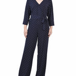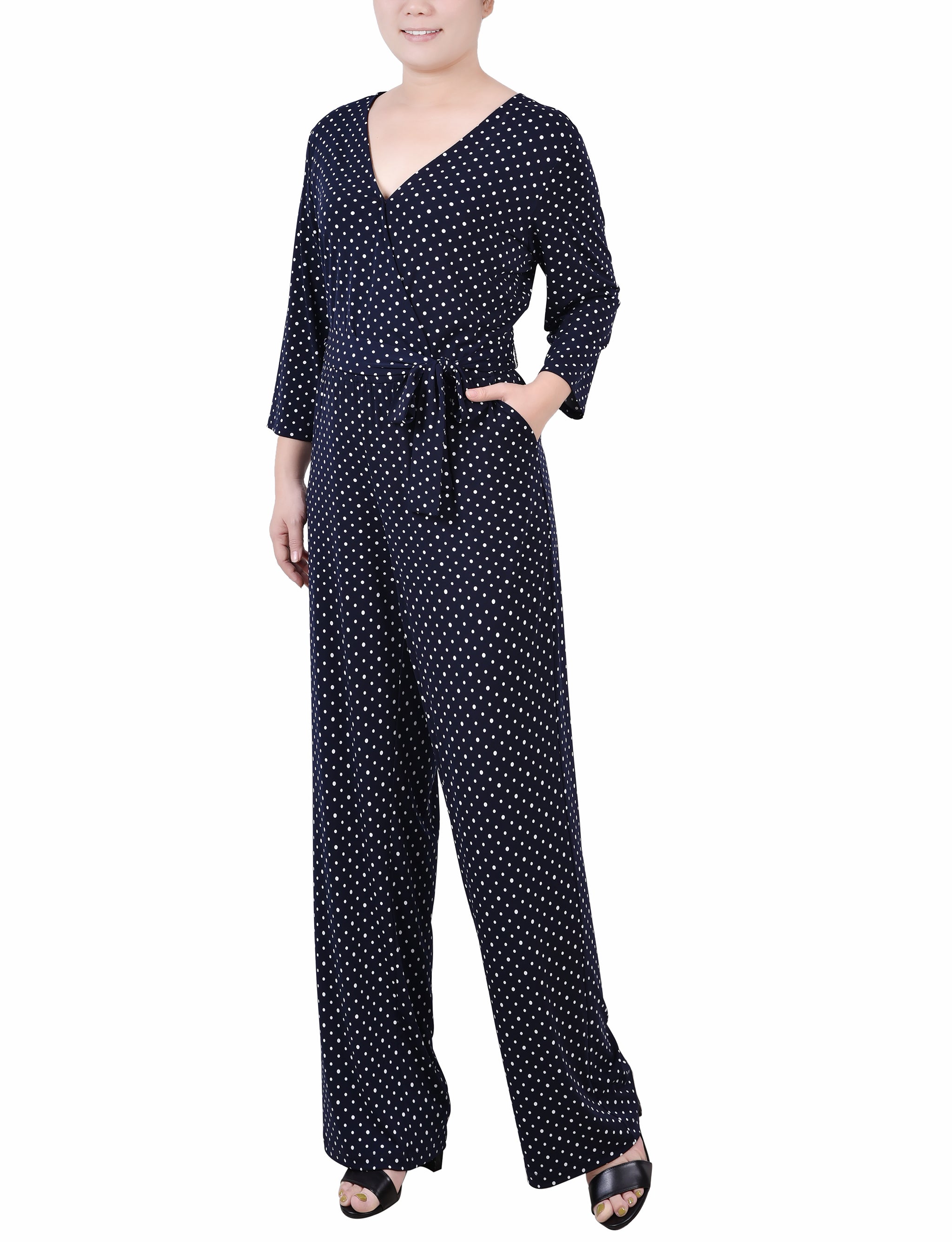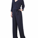 Navy Polka Dot 3/4 Sleeve Belted Jumpsuit - Petite – Dressbarn