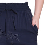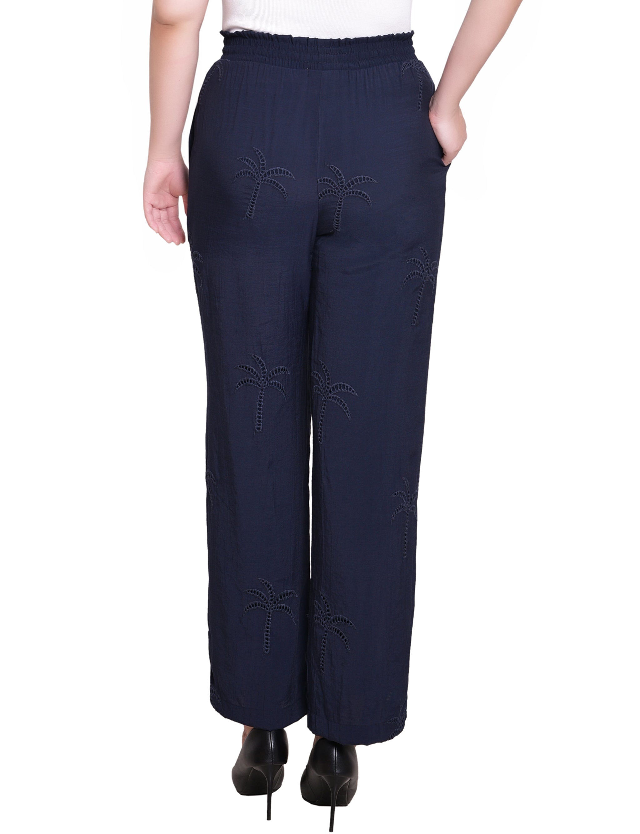 Laid-back yet stylish, these pull-on pants feature subtle palm tree embroidery, an elastic drawstring waist, and relaxed legs - perfect for casual outings or vacation wear.