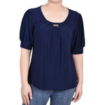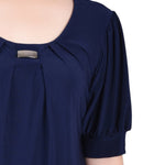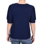 Navy Short Sleeve Balloon Sleeve Top With Hardware