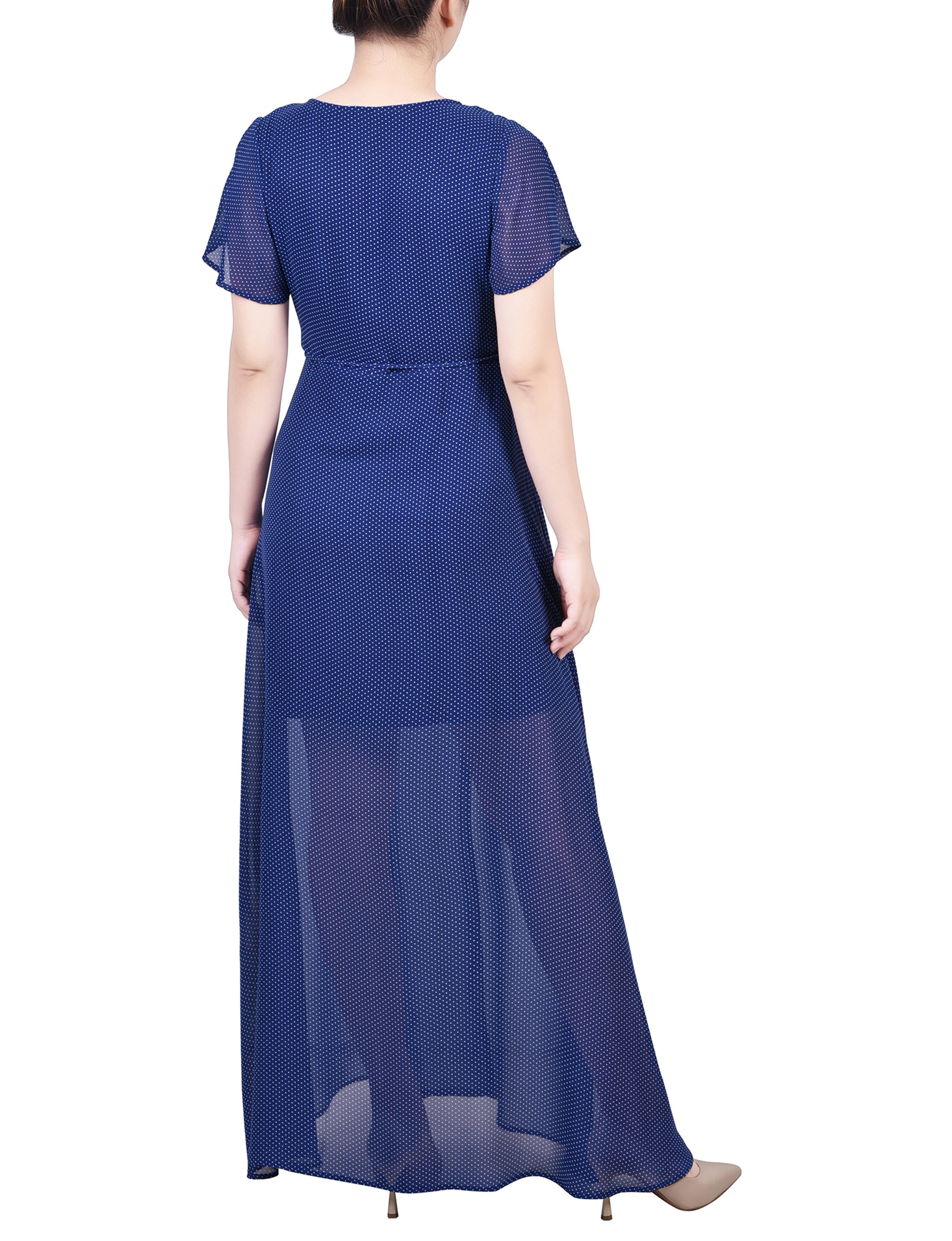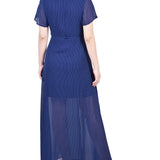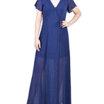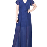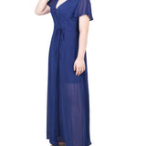 This feminine wrap style chiffon maxi dress, with a tie waist and split sleeve makes the perfect special occasion dress.
