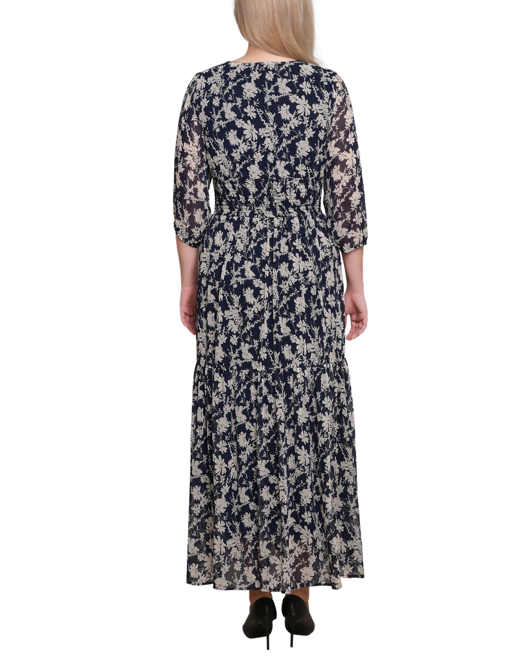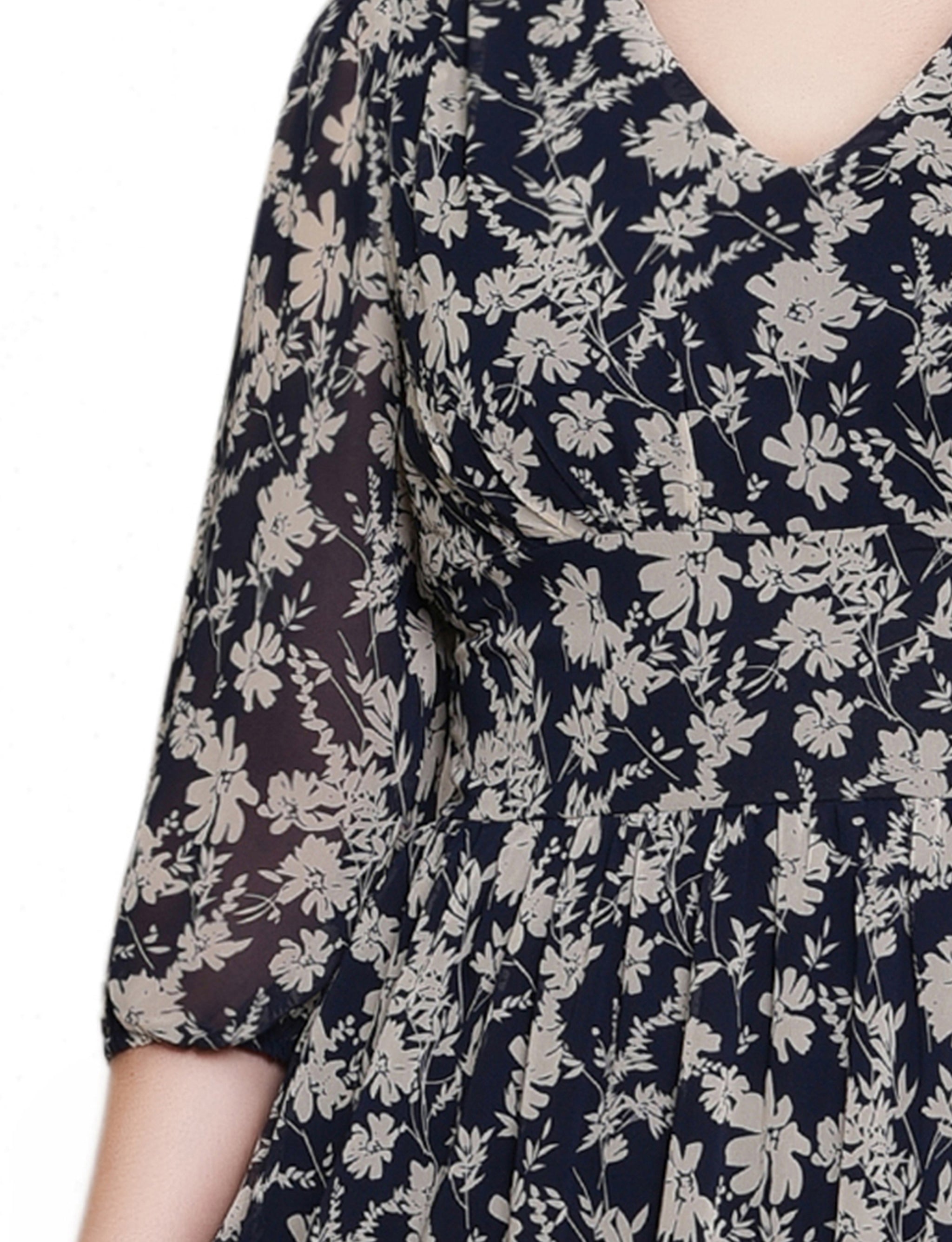 Step into charm with this floral maxi dress, featuring soft sheer sleeves, a flattering V-neckline, and a tiered silhouette. Light, breezy, and beautifully detailed—perfect for brunches, garden parties, or casual strolls