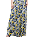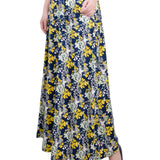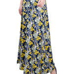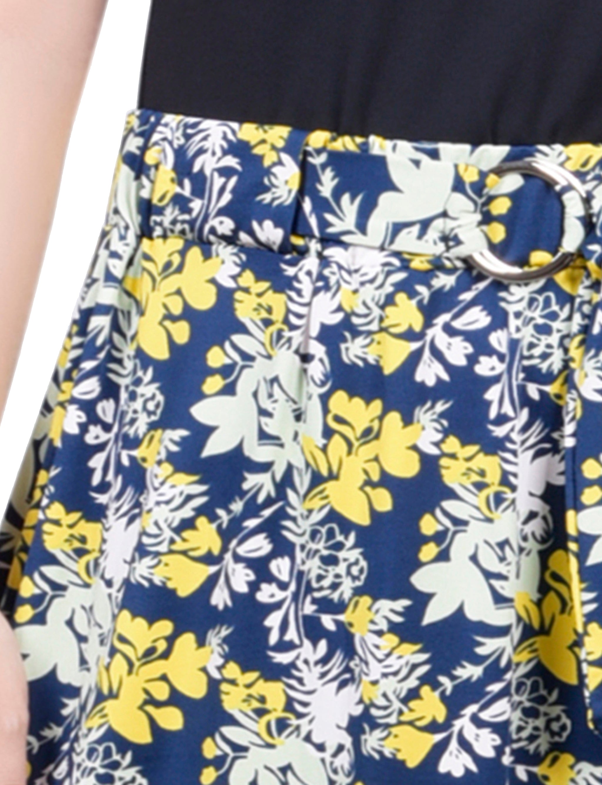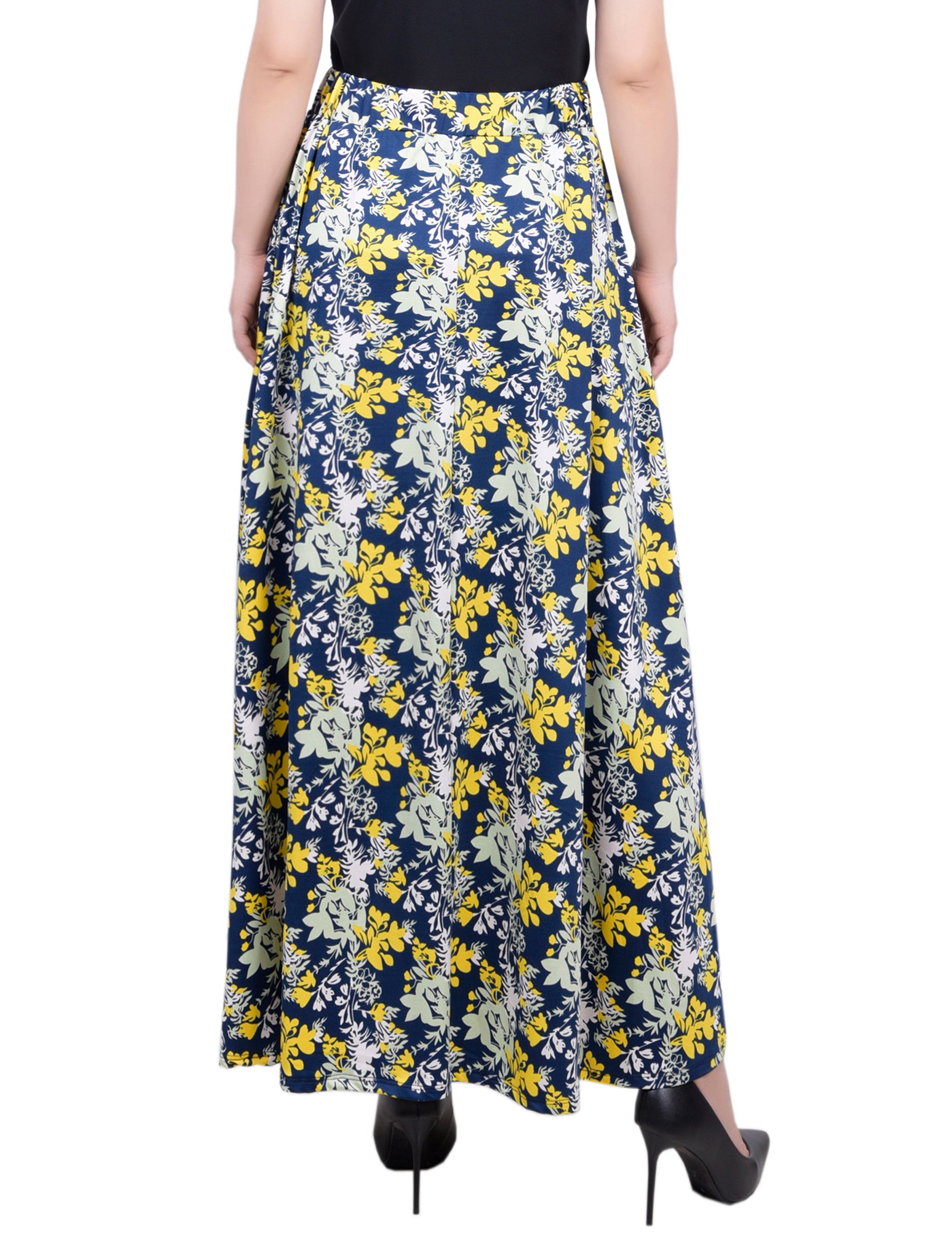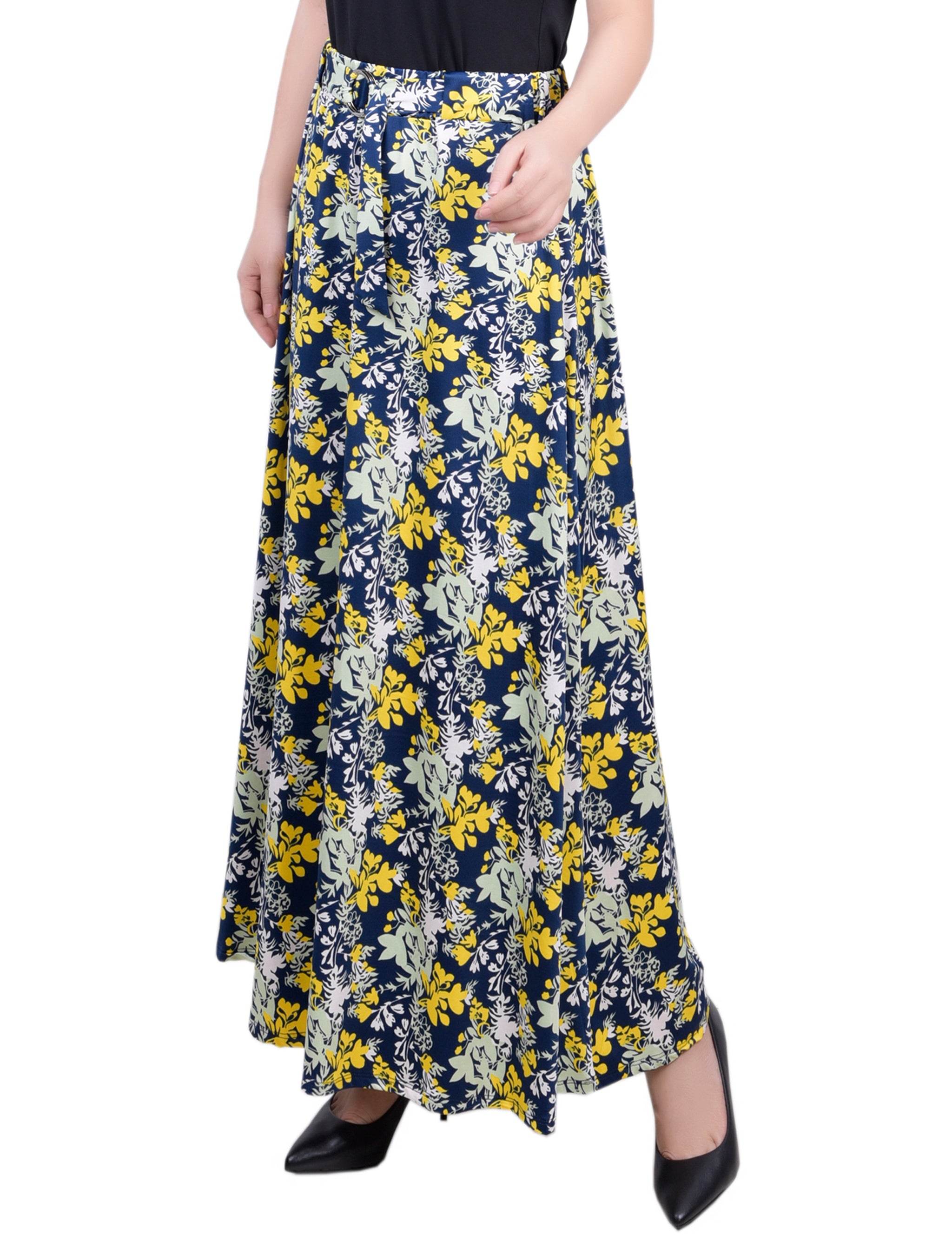 Navy Yellow Plant Ring Detail Midi-Length Skirt - Petite