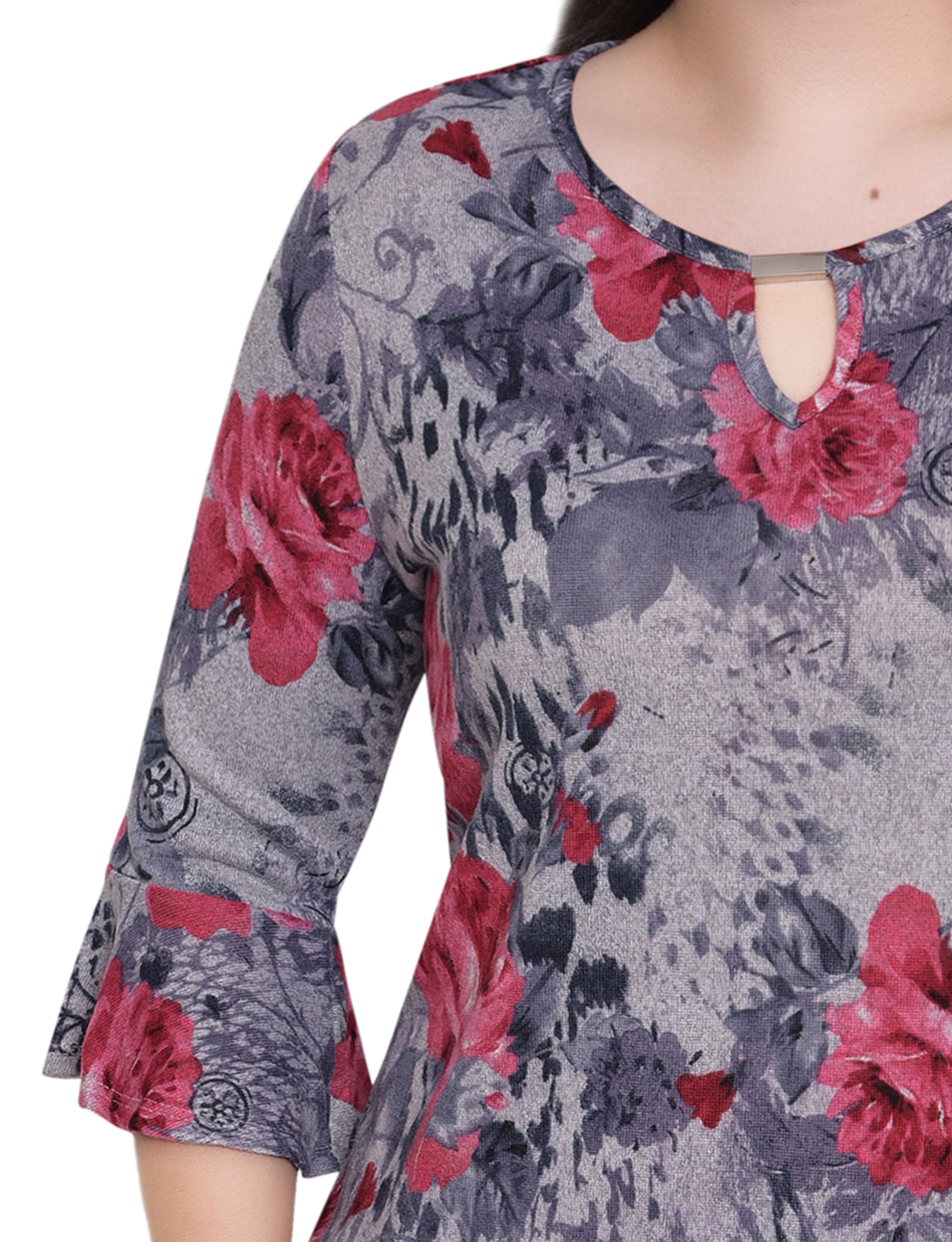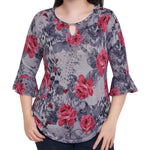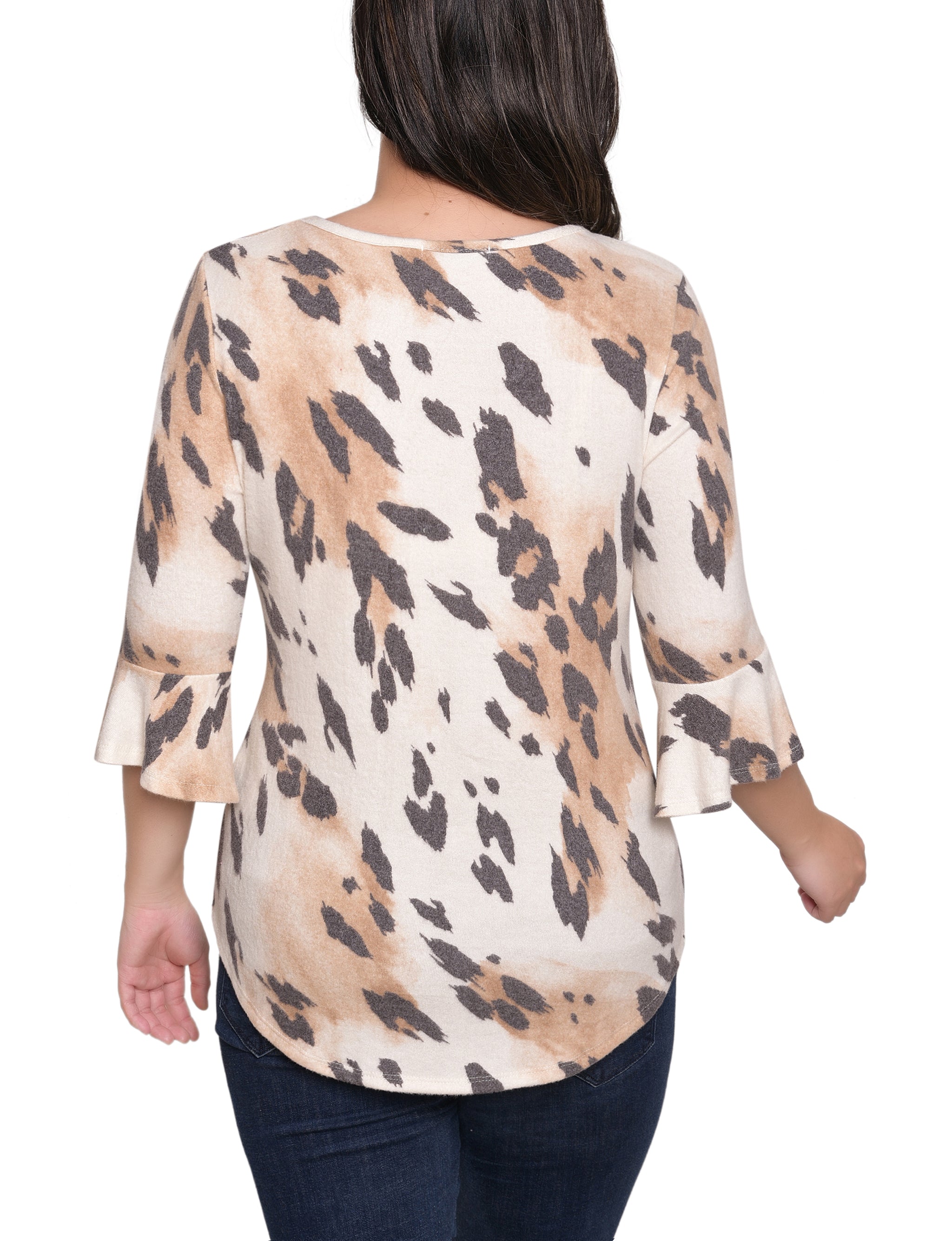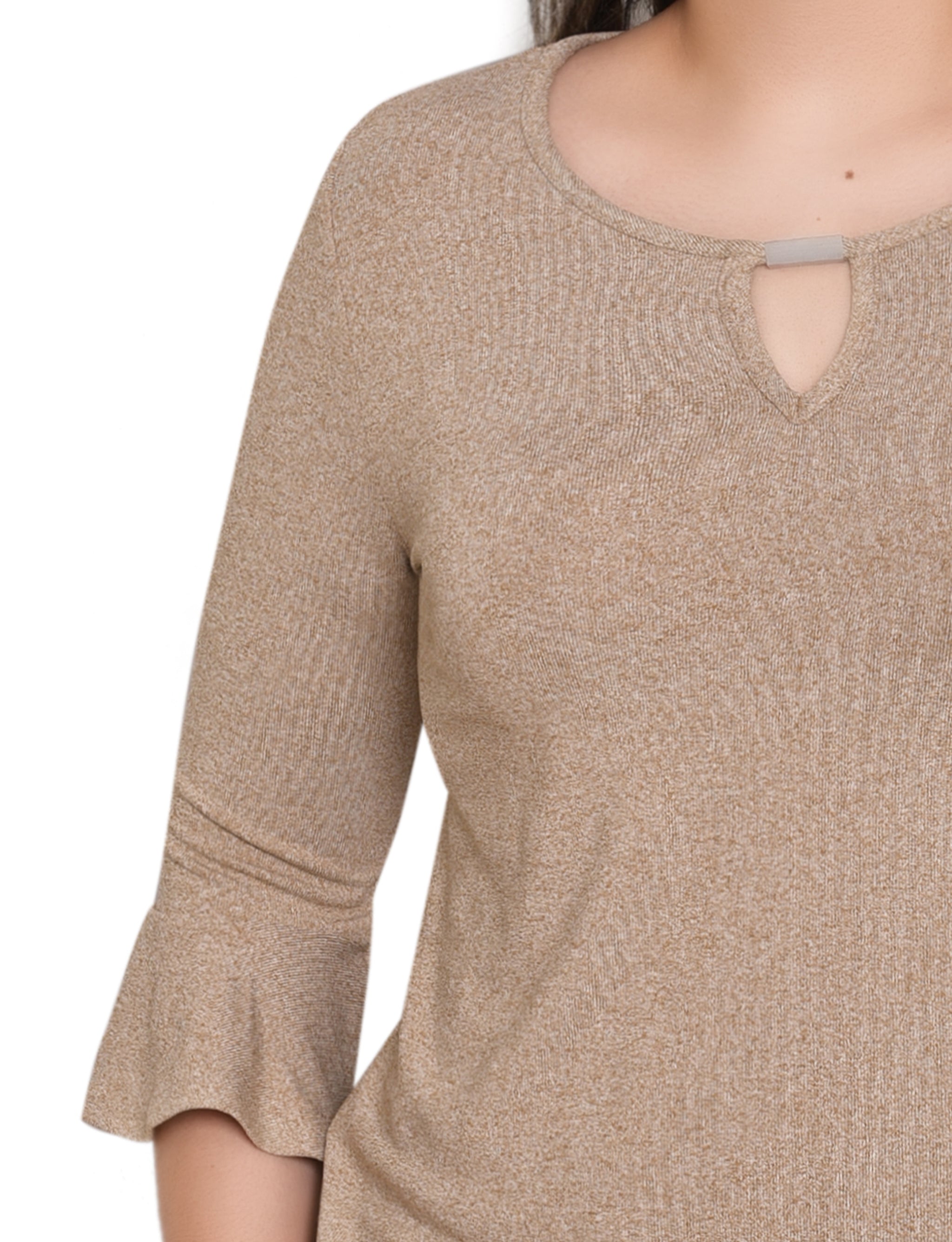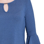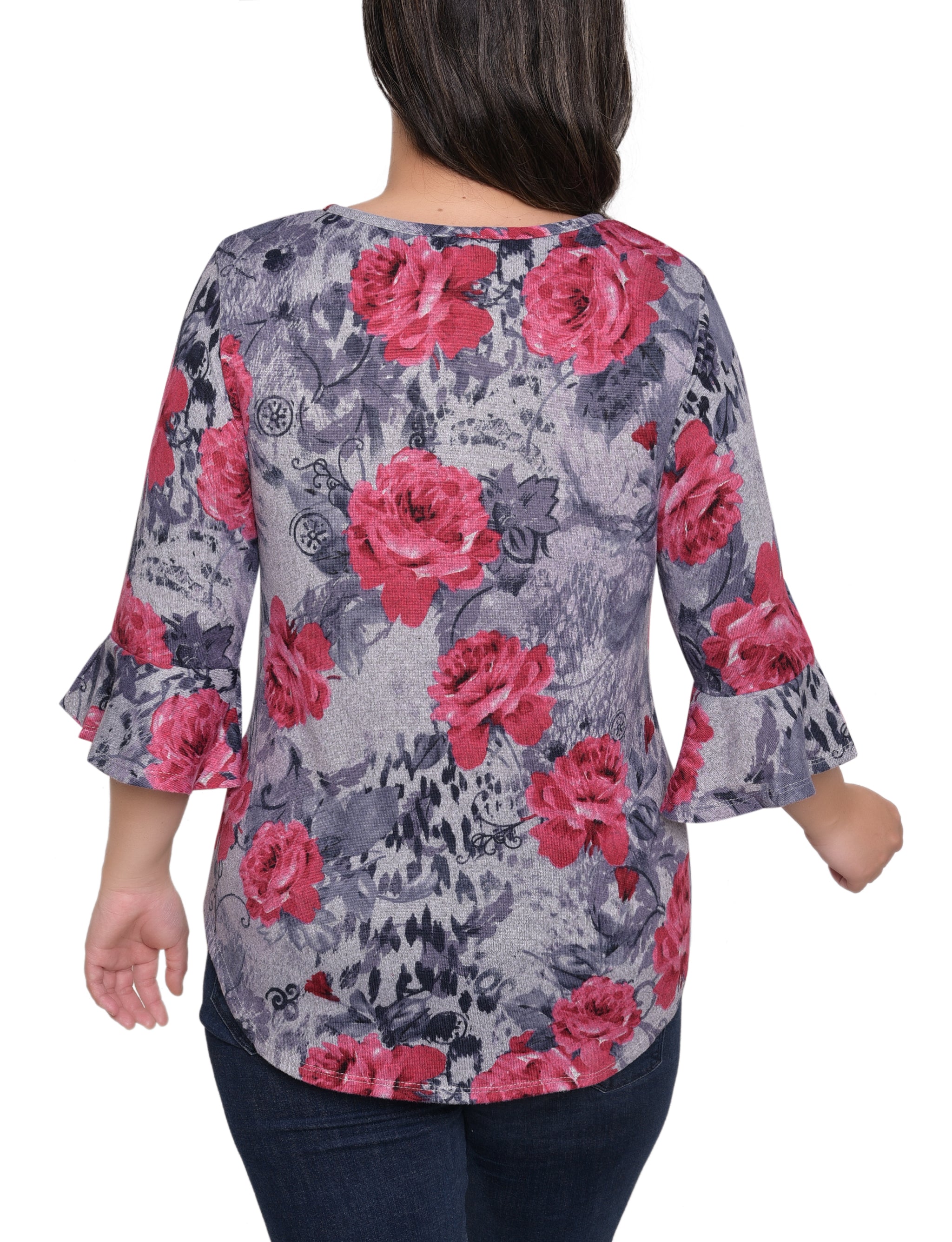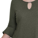 Effortless and easy to wear, this NY Collection knit top features a relaxed silhouette with a keyhole neckline and flounced 3/4 sleeves for a touch of feminine flair. Perfect for casual days or dressed-up comfort.