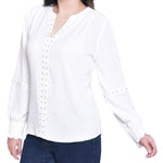 NY Collection Long Sleeve Studded Blouse