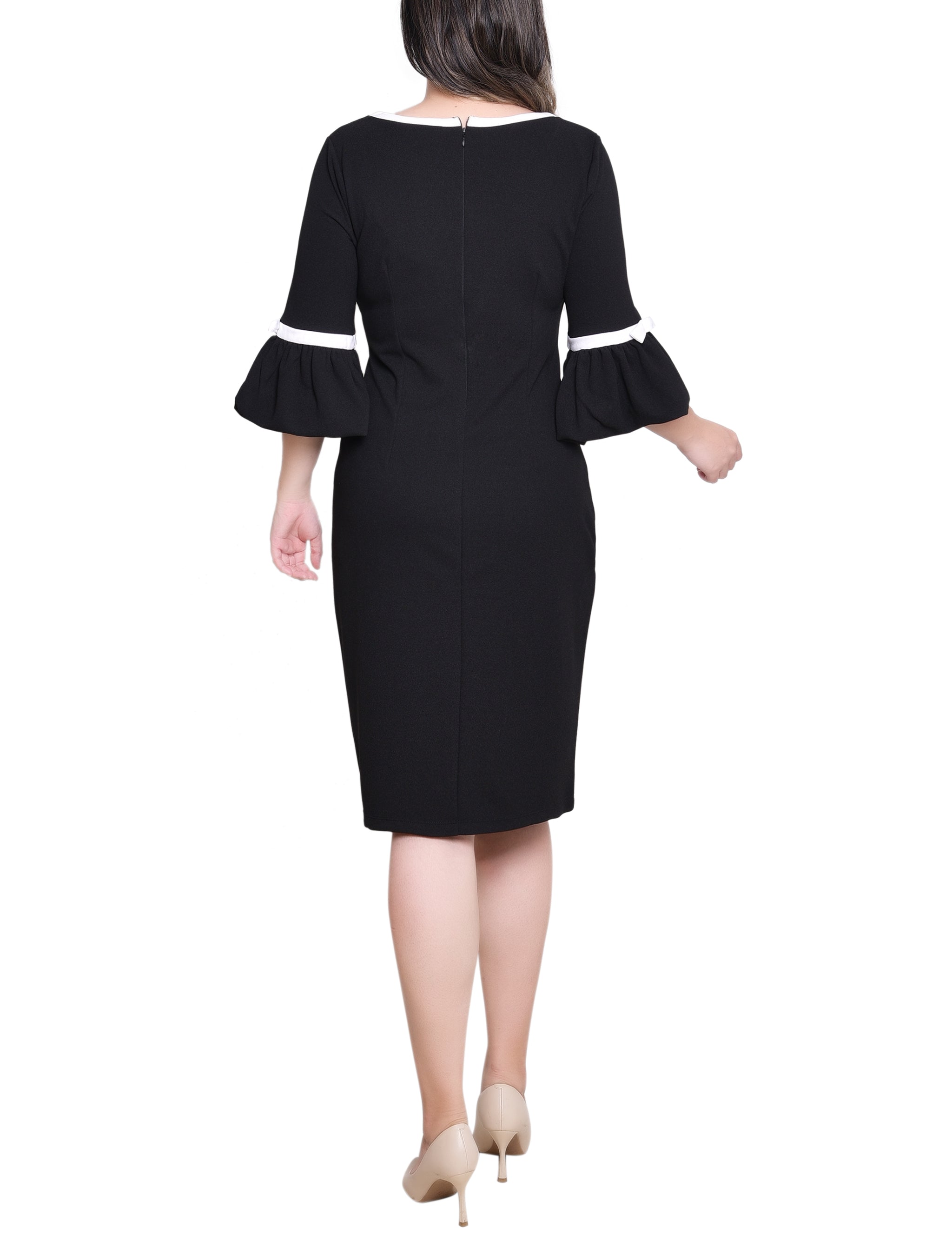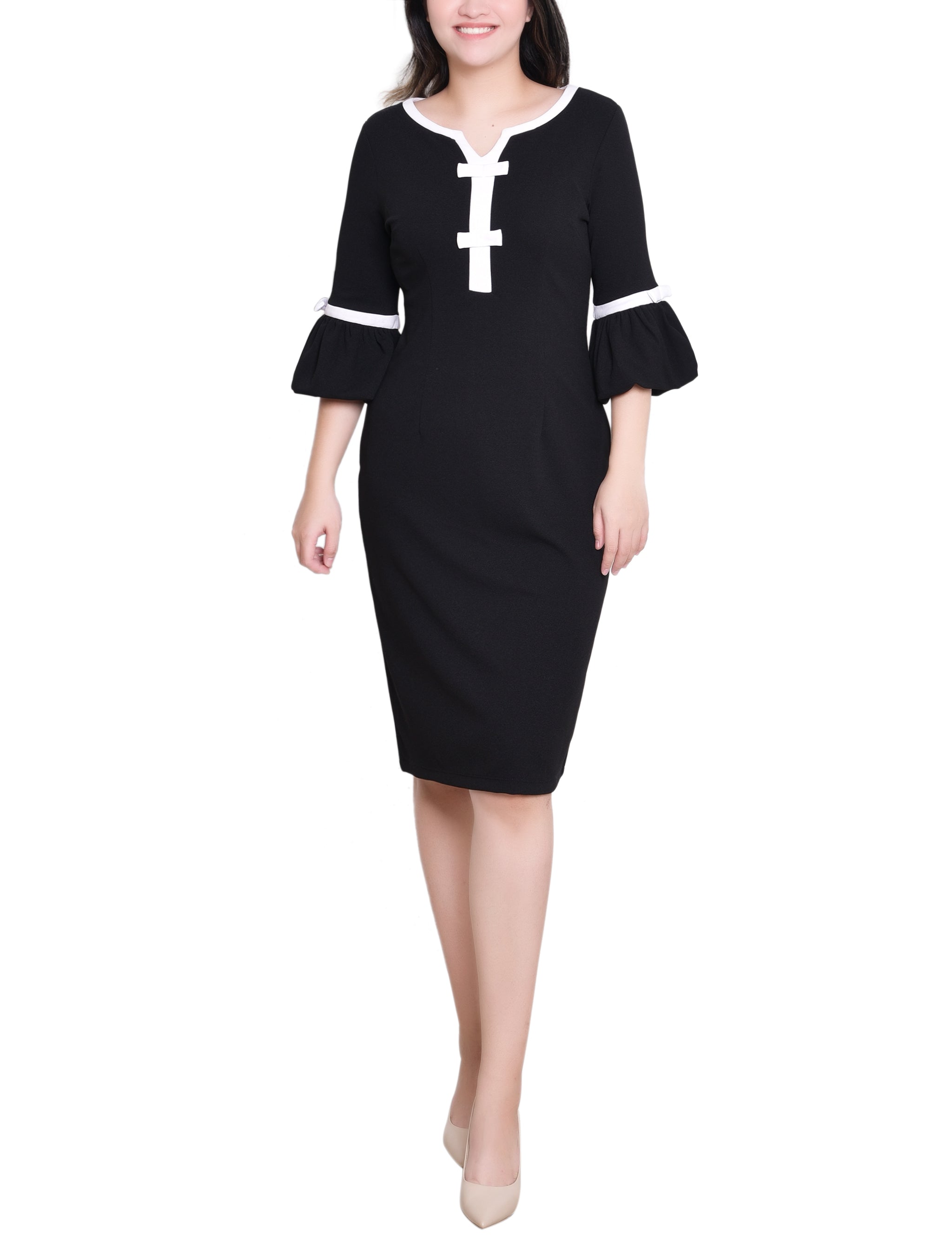Turn heads in this NY Collection sheath dress, featuring contrast-color details on the sleeves and front. Perfect for stylish nights out or your special event.
