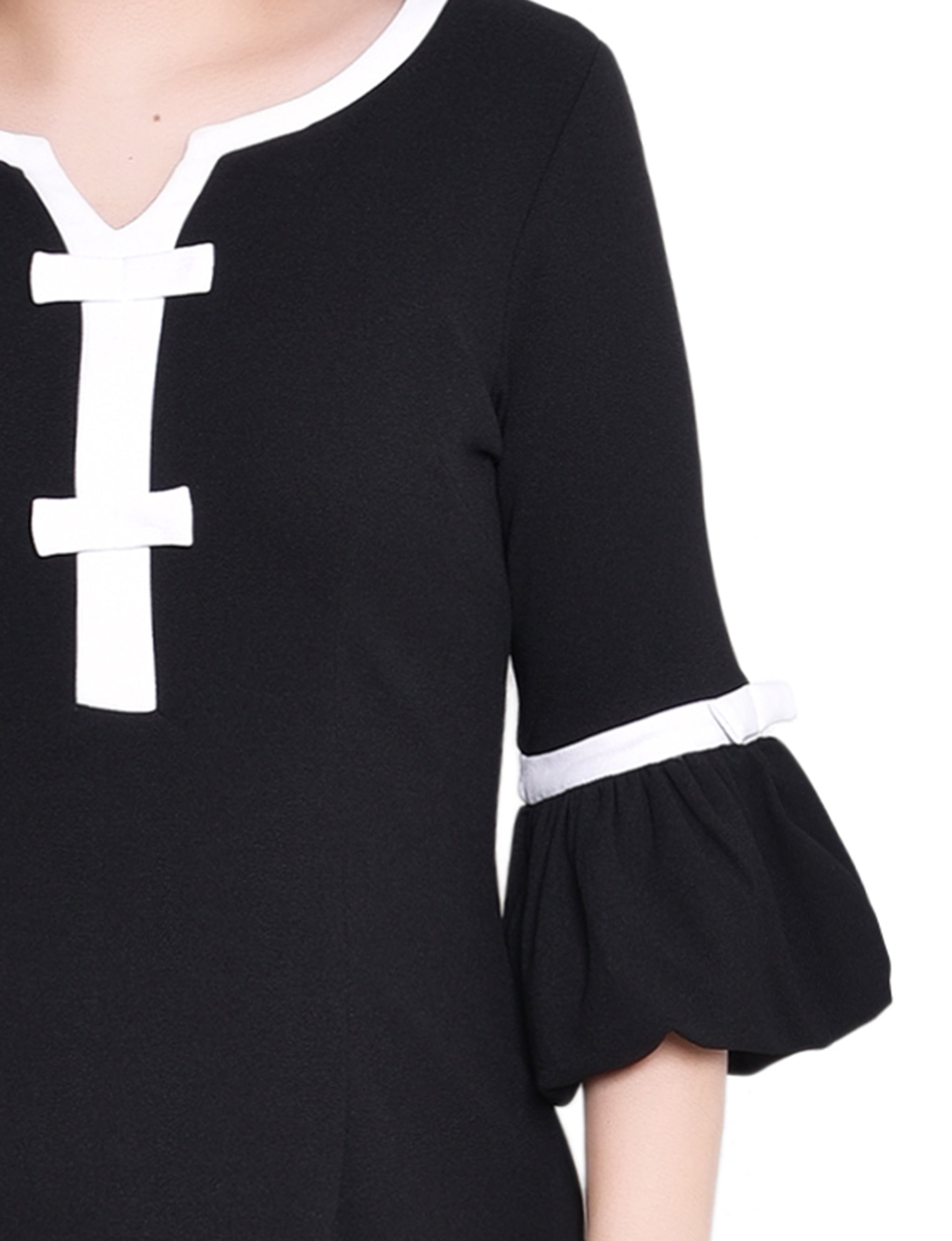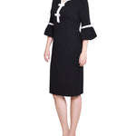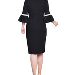 NY Collection Missy 3/4 Sleeve Contrast Detail Dress - Black White