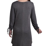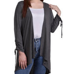 With rouched sleeve details and a high low hem, this NY Collection cardigan is a twist on a classic layering piece.