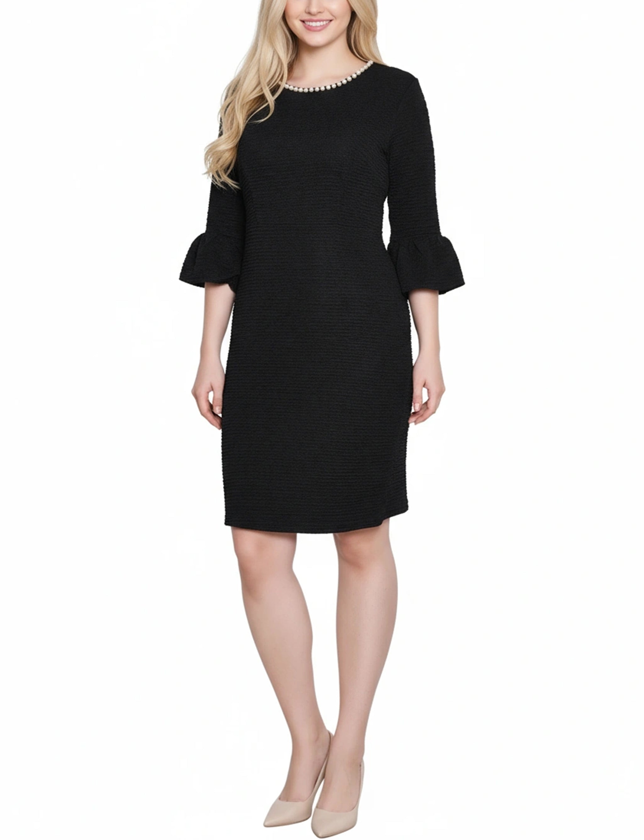NY Collection Petite 3/4 Length Pearl Detail Dress