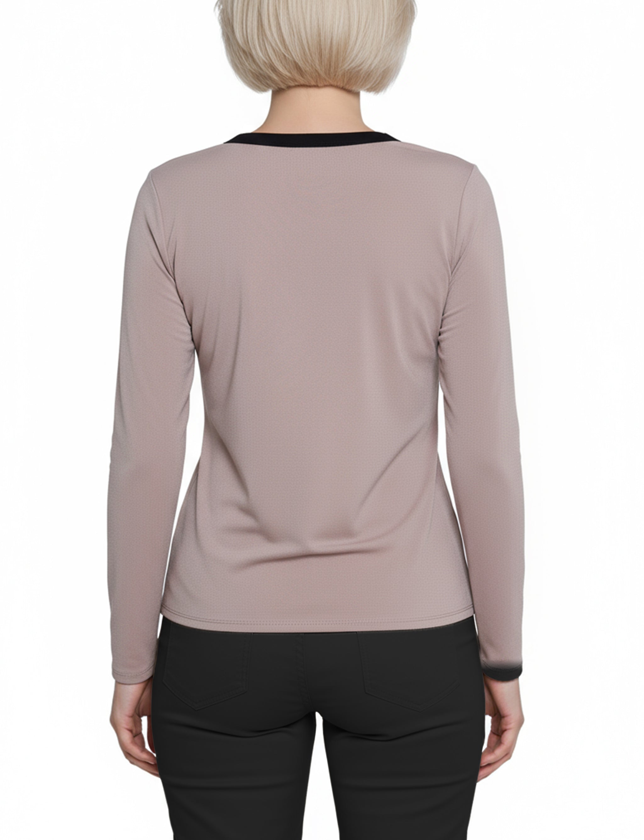 NY Collection Petite Long Sleeve Contrast Detail Top