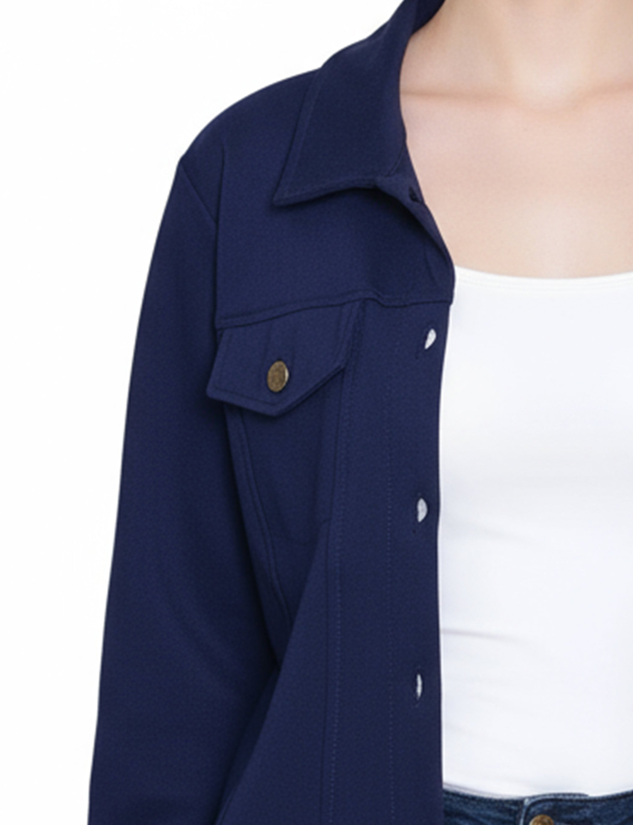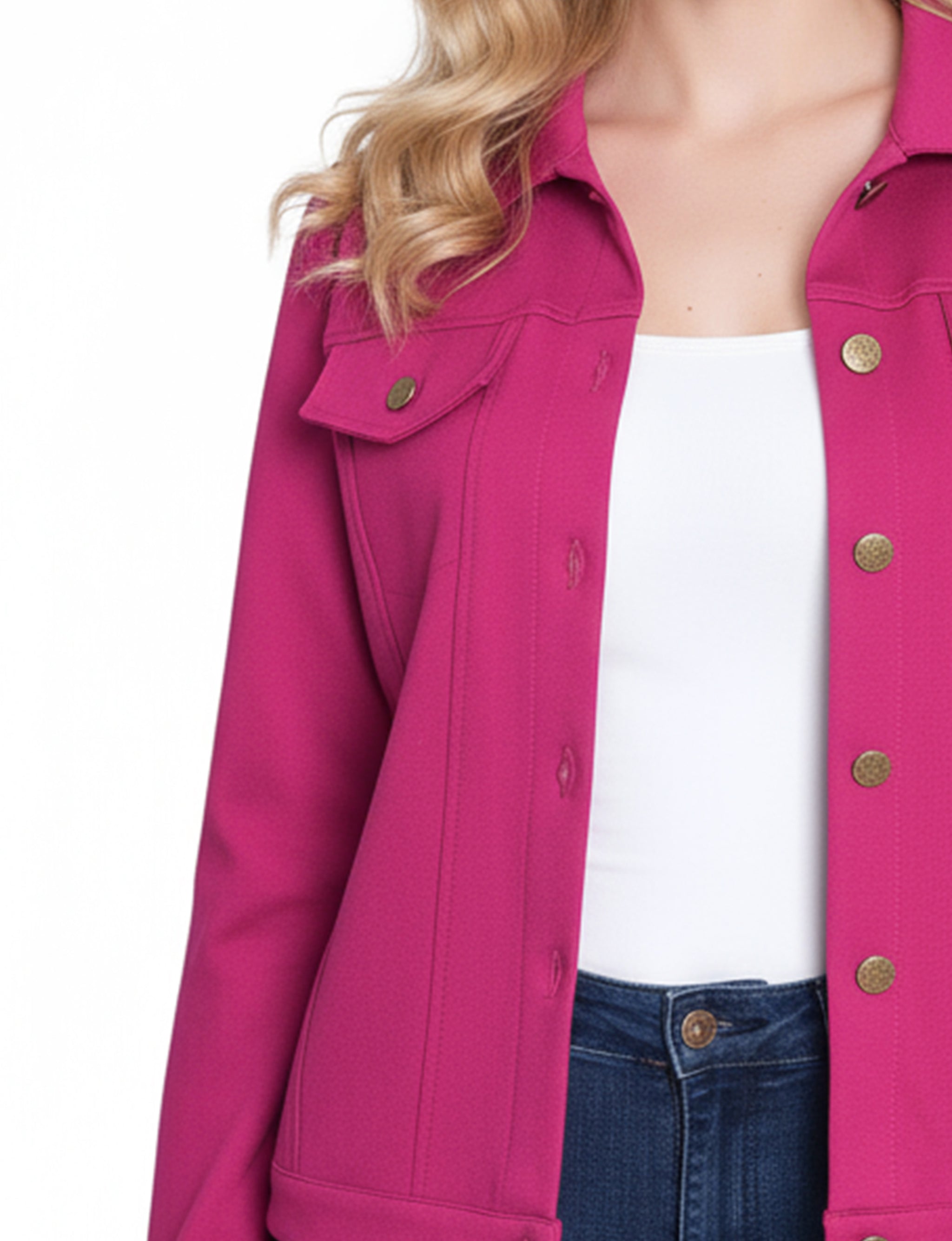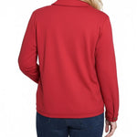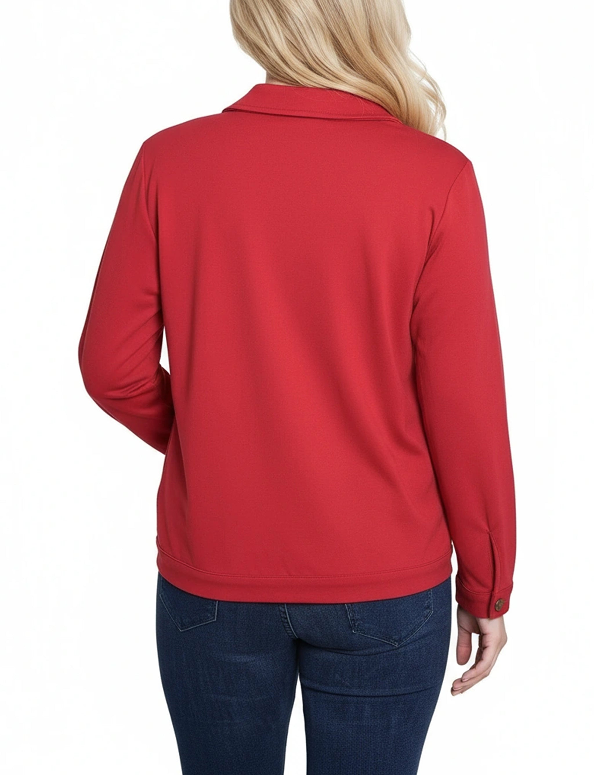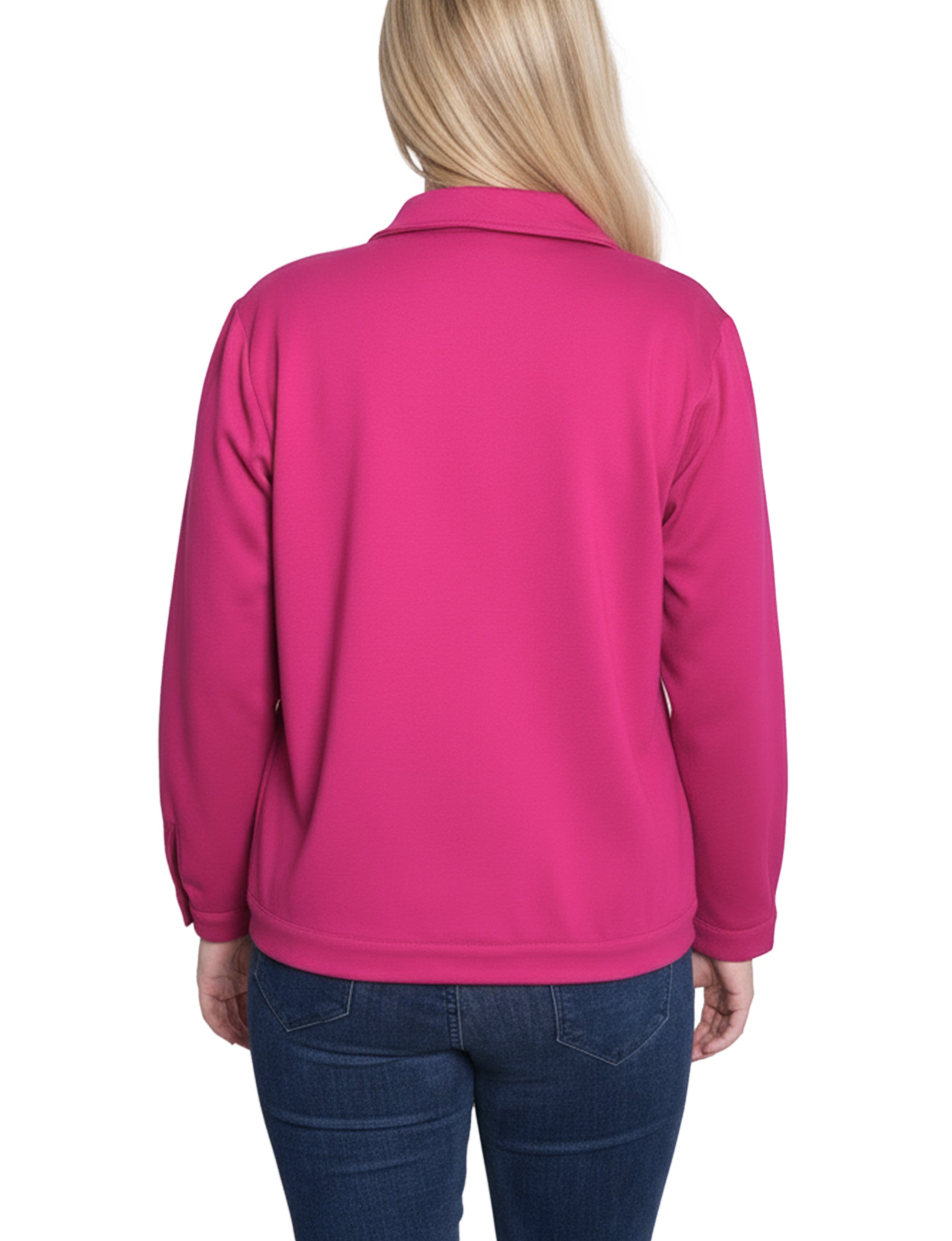 This NY Collection ponte jacket combines structured tailoring with comfortable stretch, making it a versatile layering piece for any season. Featuring a button-front design, chest flap pockets, and clean seam detailing, it's a timeless addition to your everyday wardrobe.