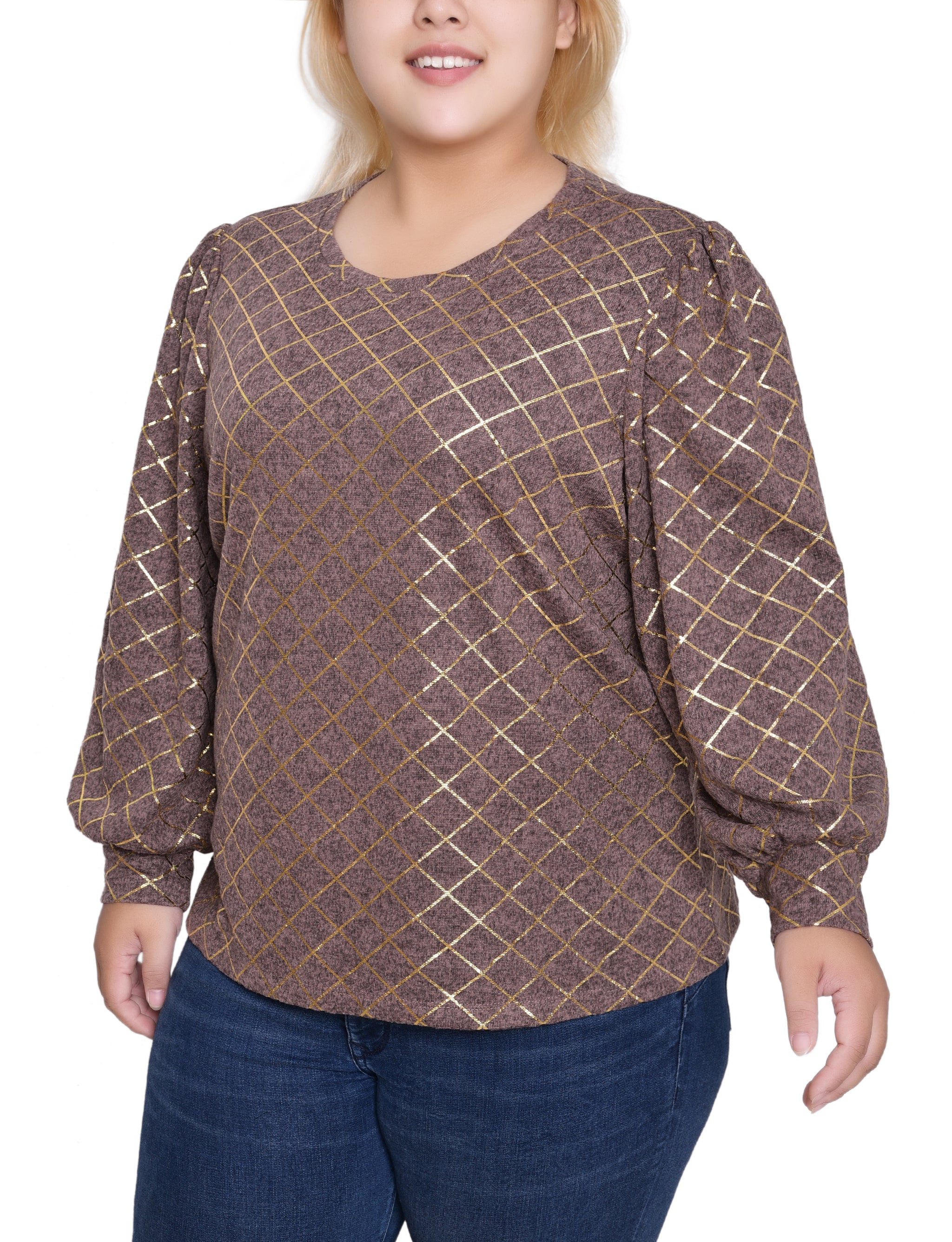 NY Collection Plus Size Bishop Sleeve Pullover Top