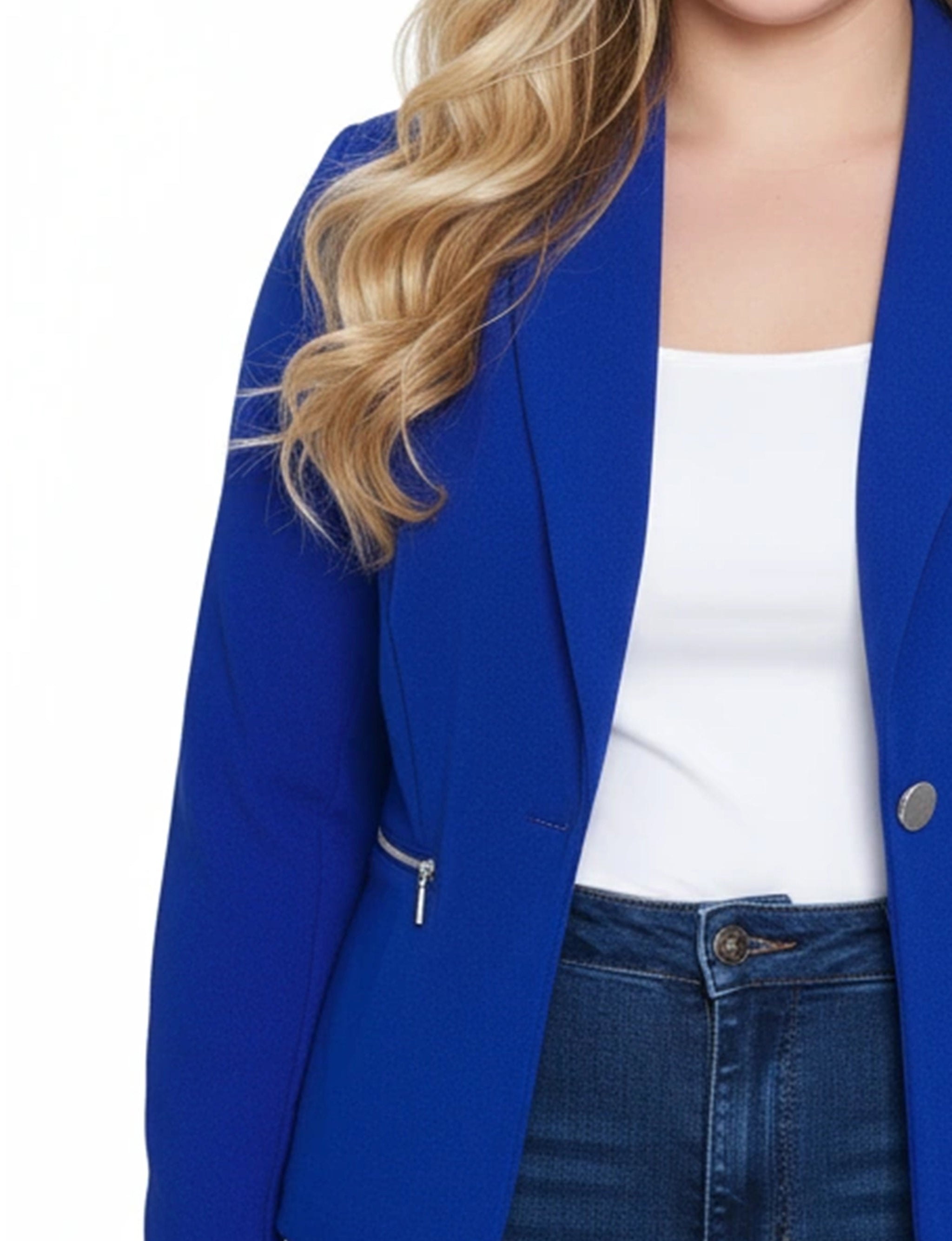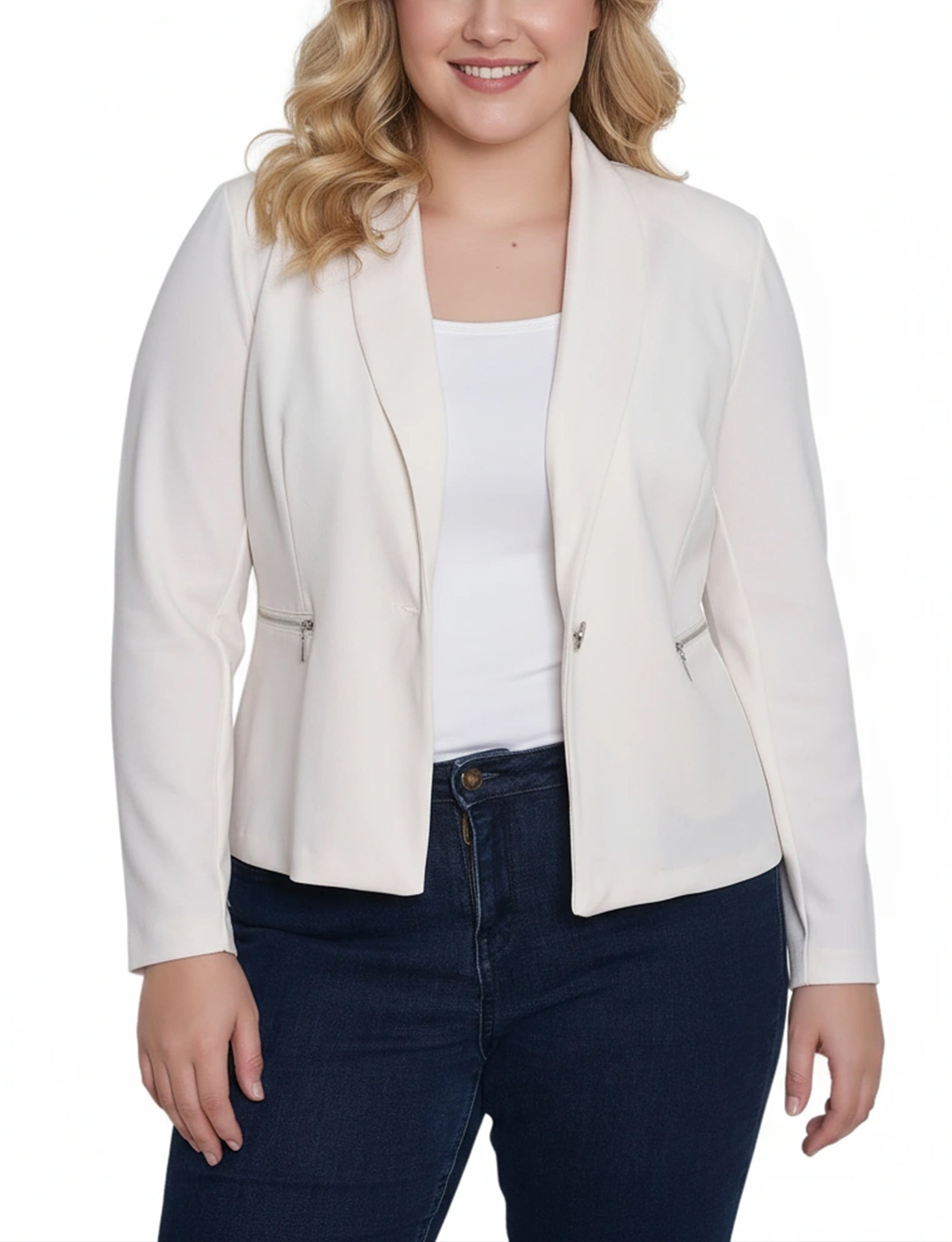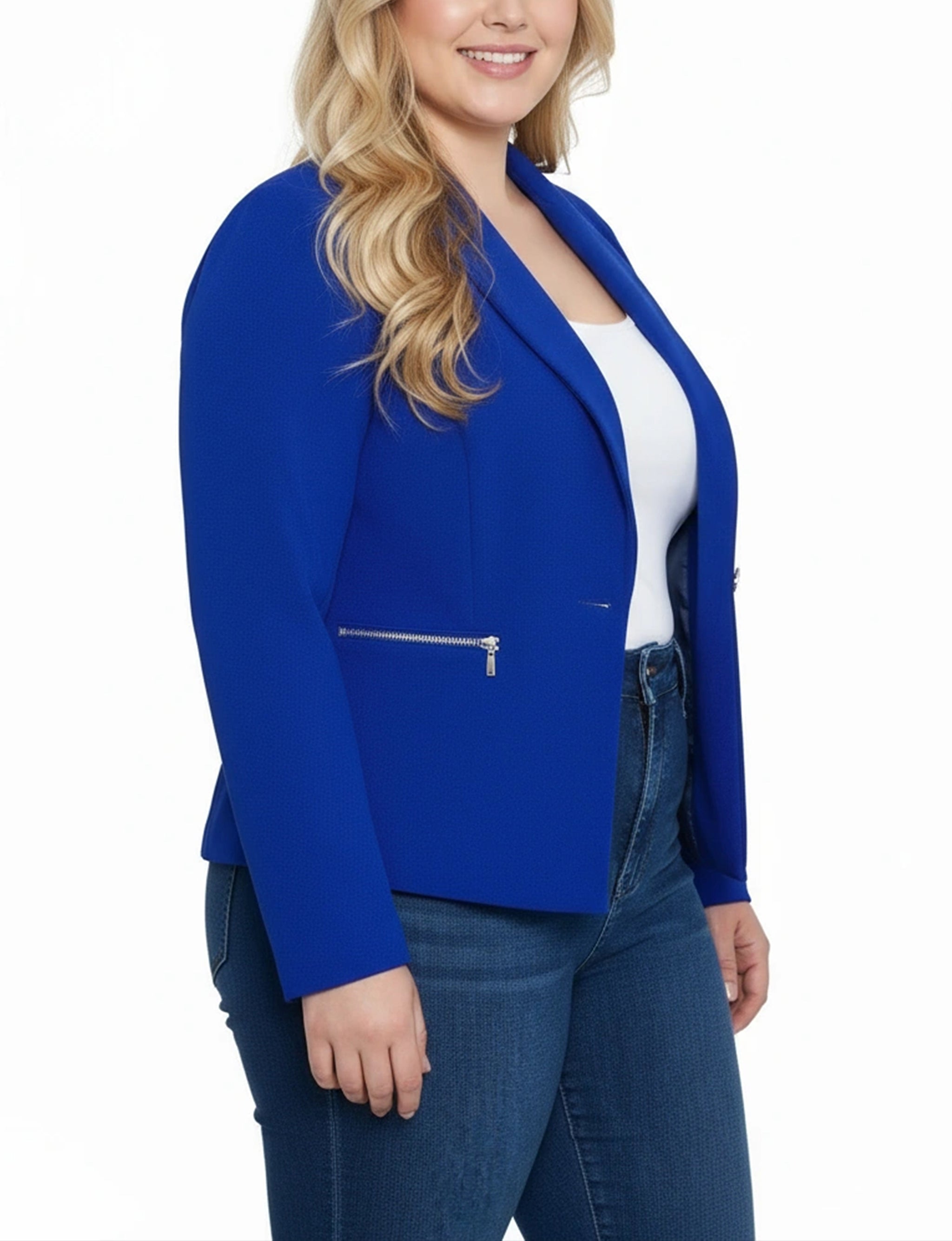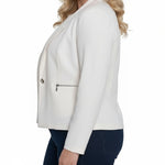 This short crepe zip-pocket jacket can pair with your favorite jeans or dress it up by wearing it with your favorite skirt or dress.