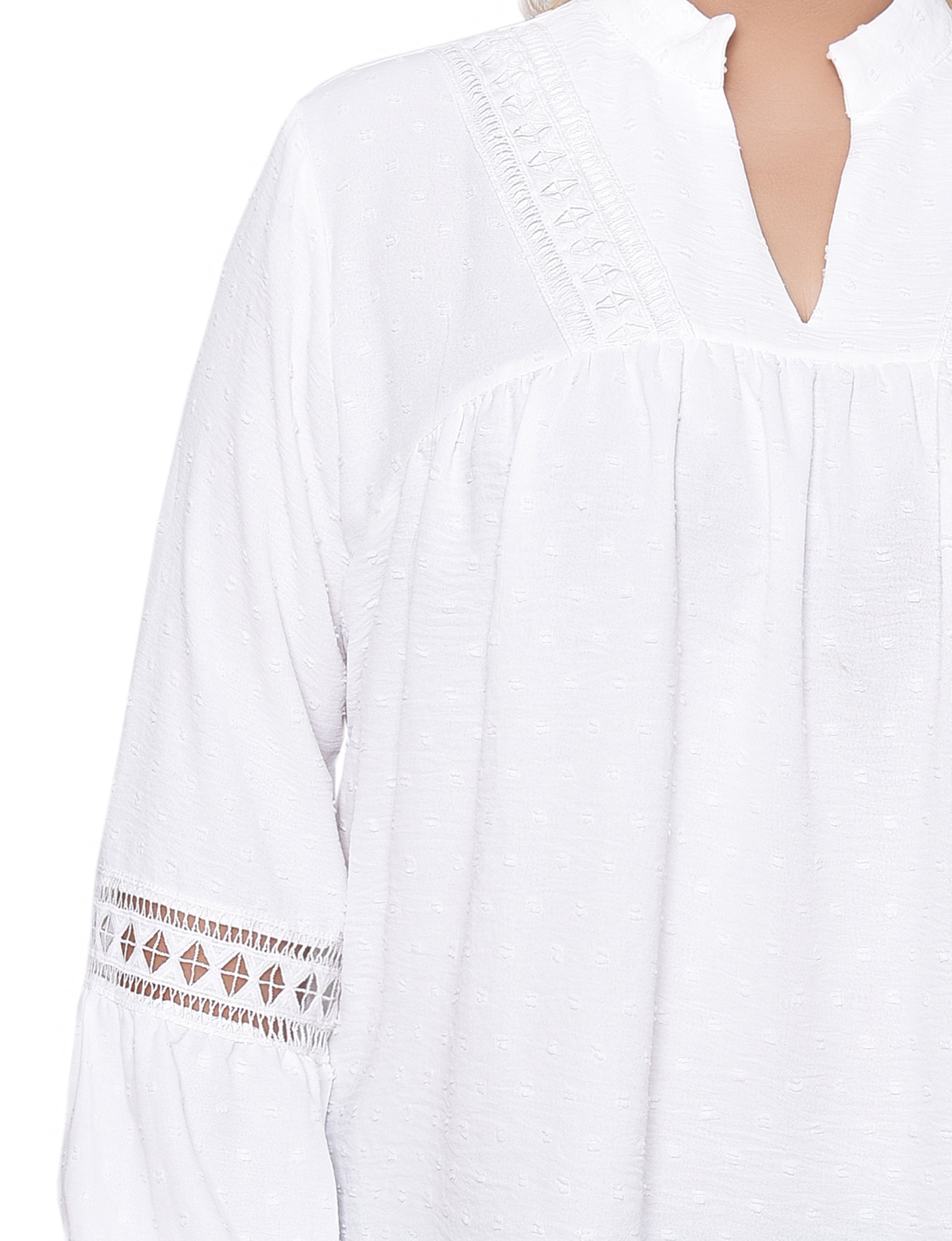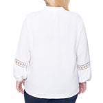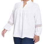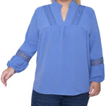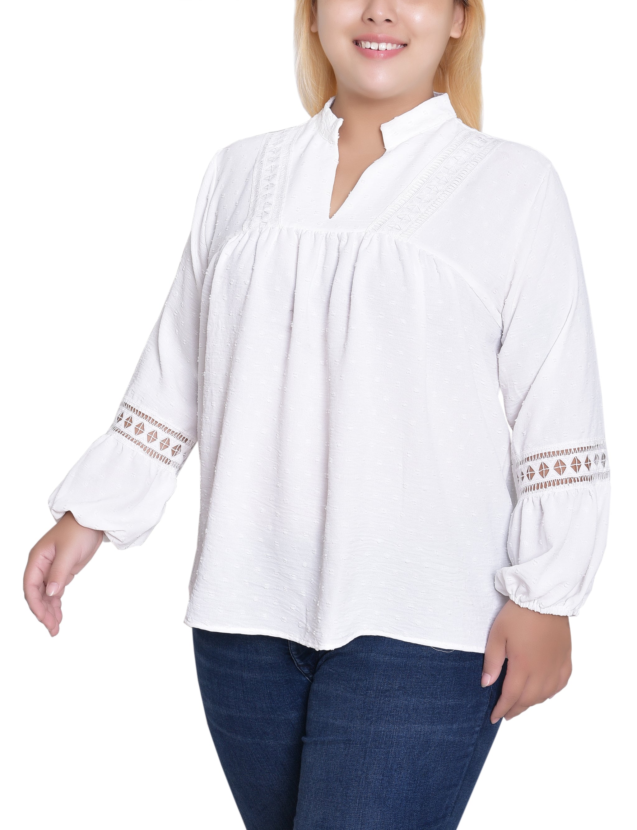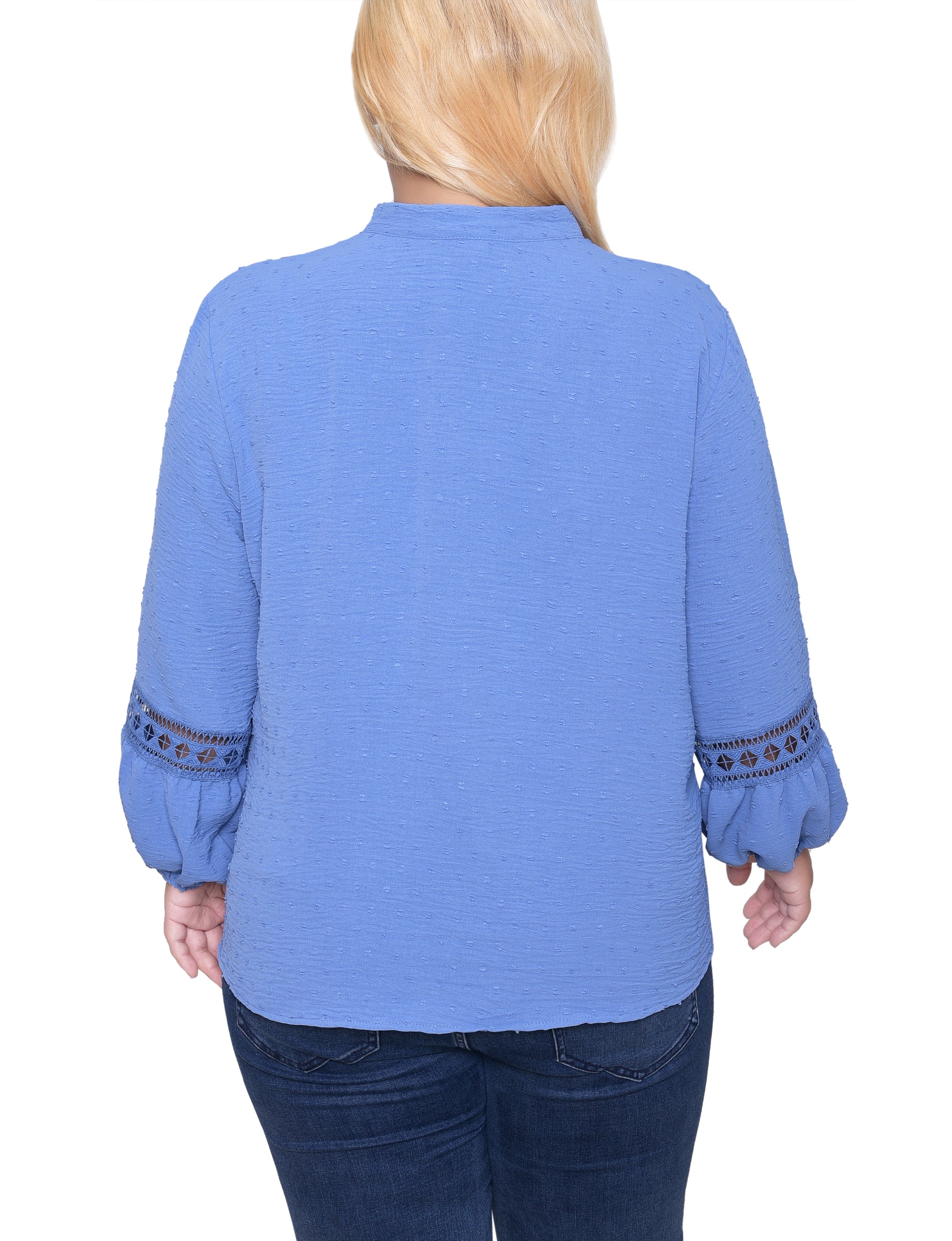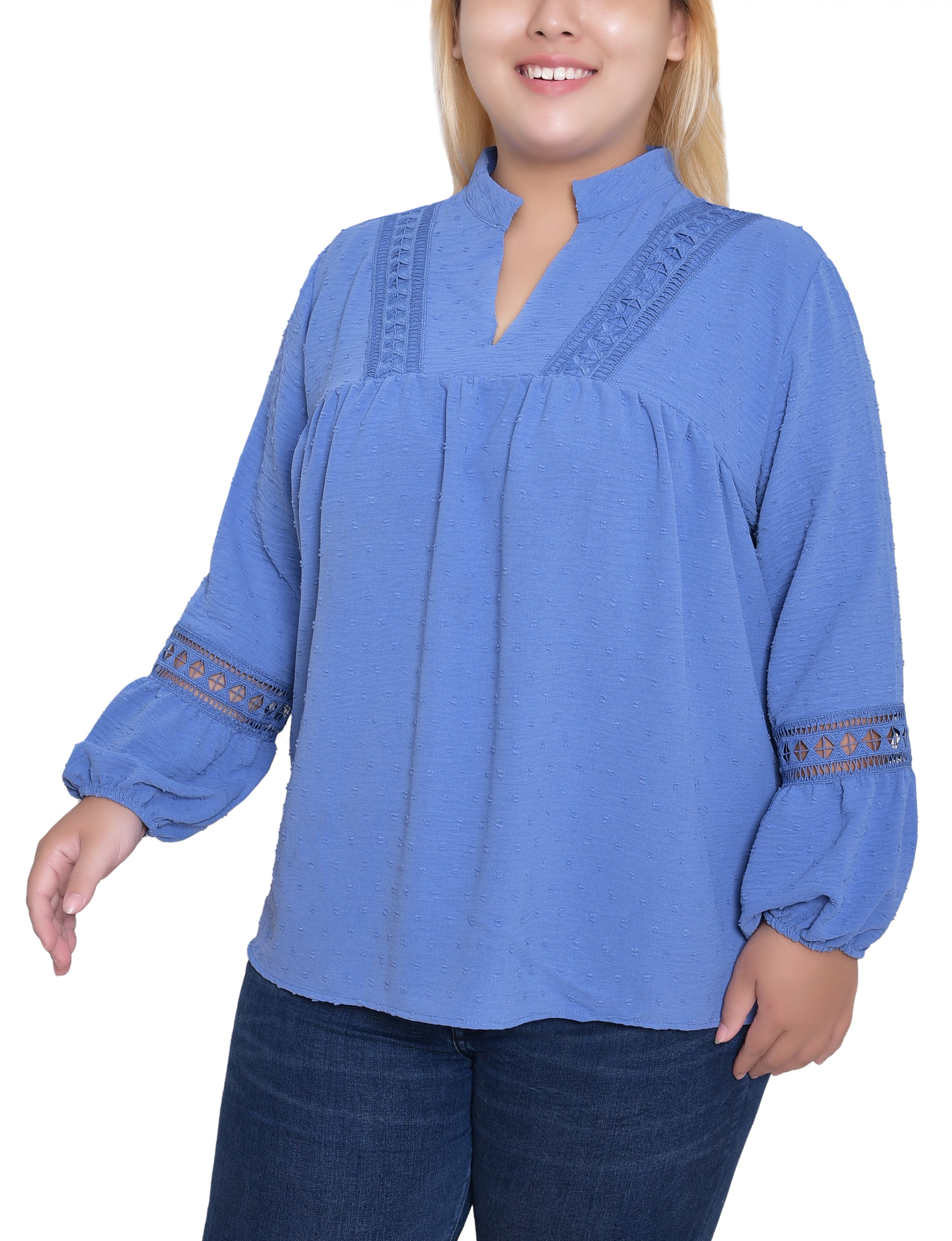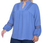 Crochet and lace details from NY Collection make this lightly textured blouse perfect for a day at the office or hanging with friends.