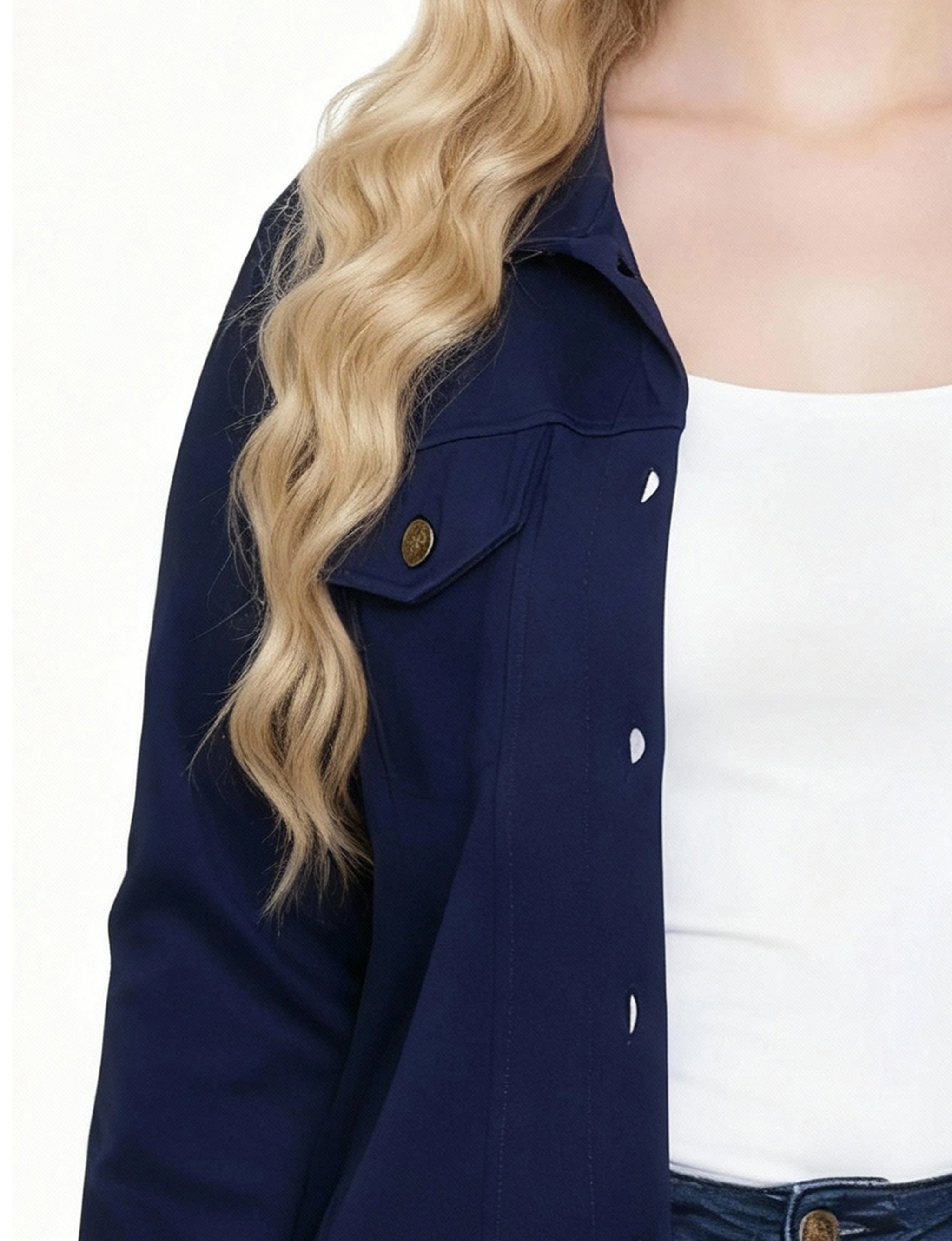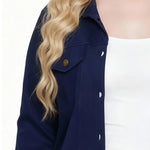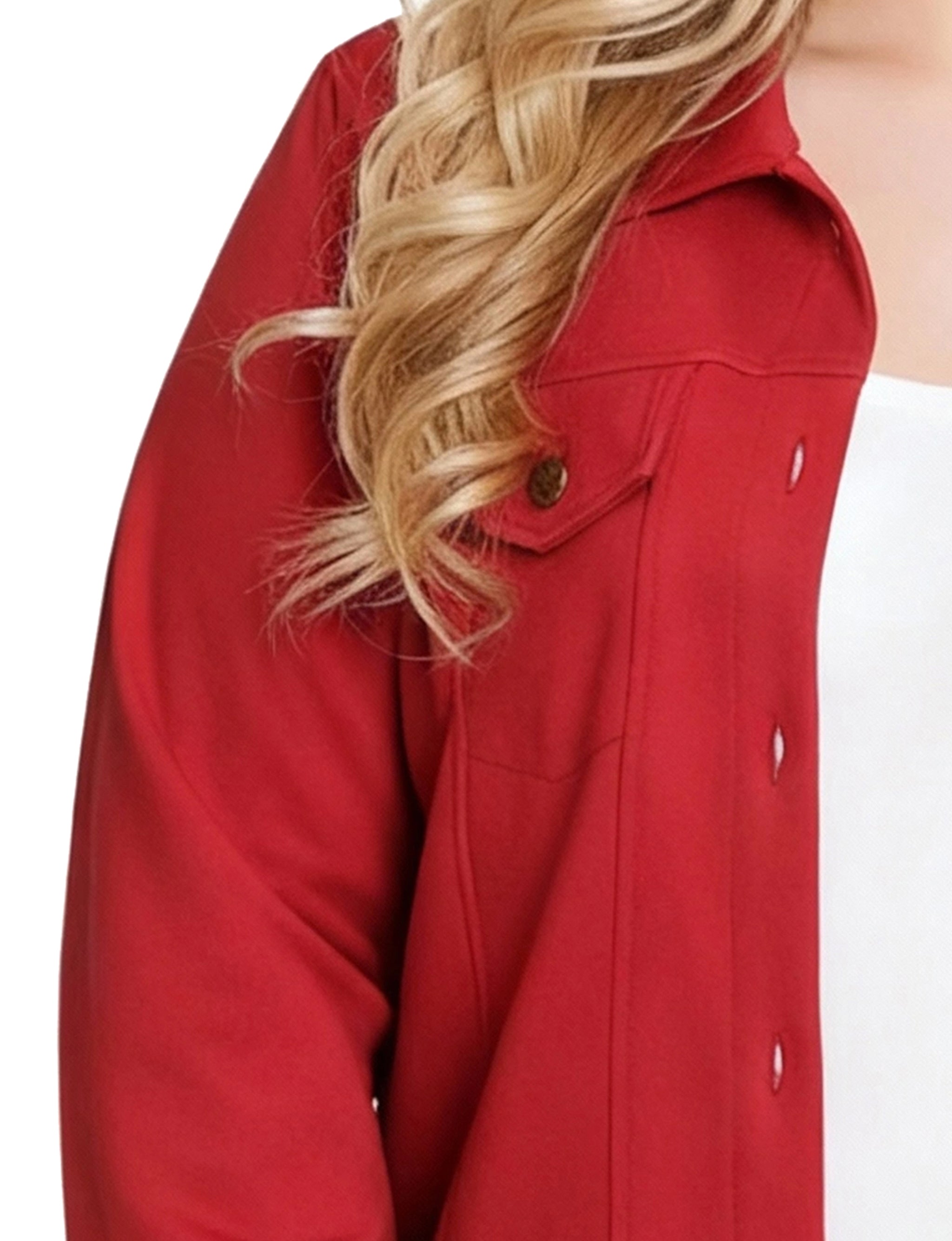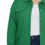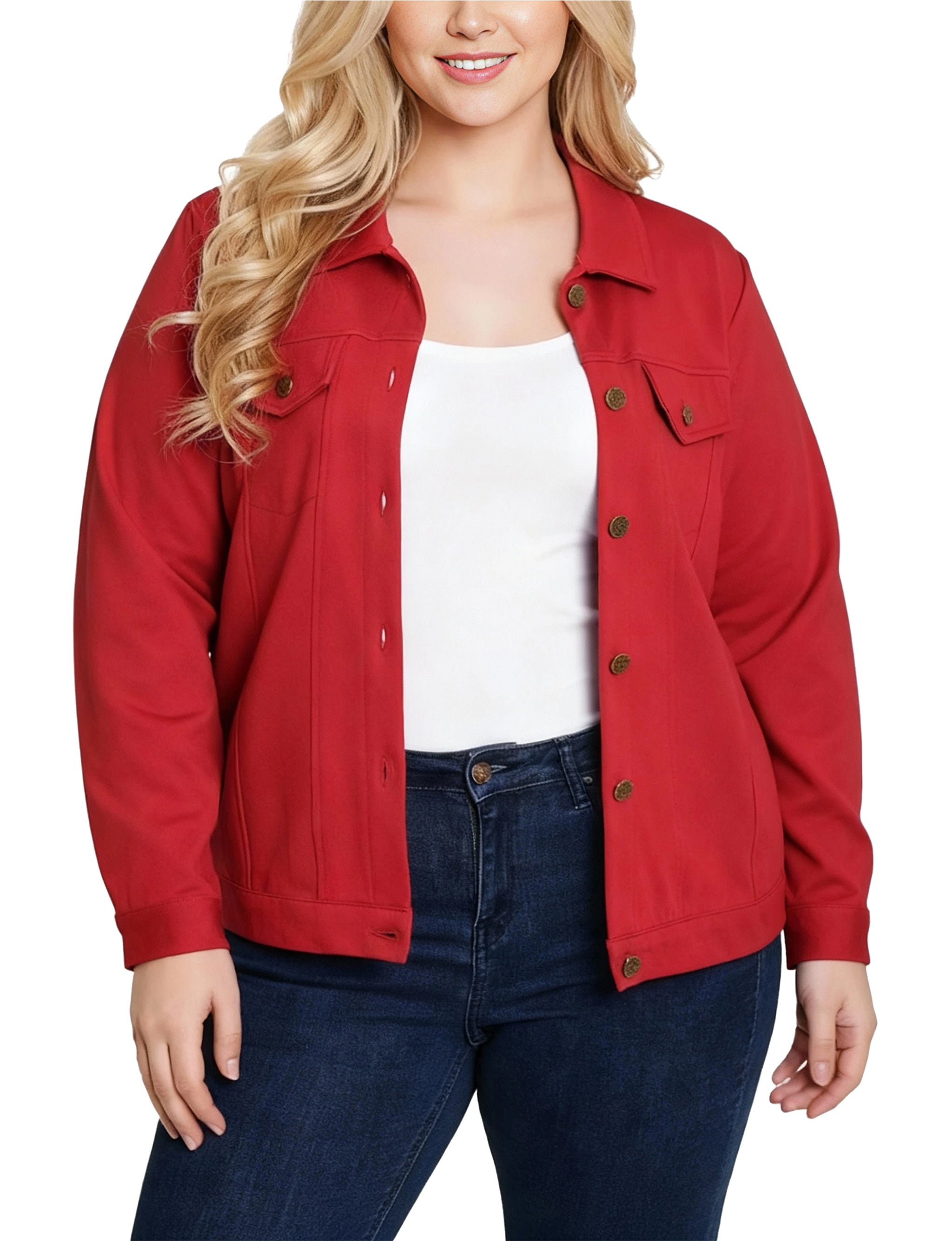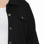 This NY Collection ponte jacket combines structured tailoring with comfortable stretch, making it a versatile layering piece for any season. Featuring a button-front design, chest flap pockets, and clean seam detailing, it's a timeless addition to your everyday wardrobe.