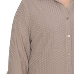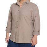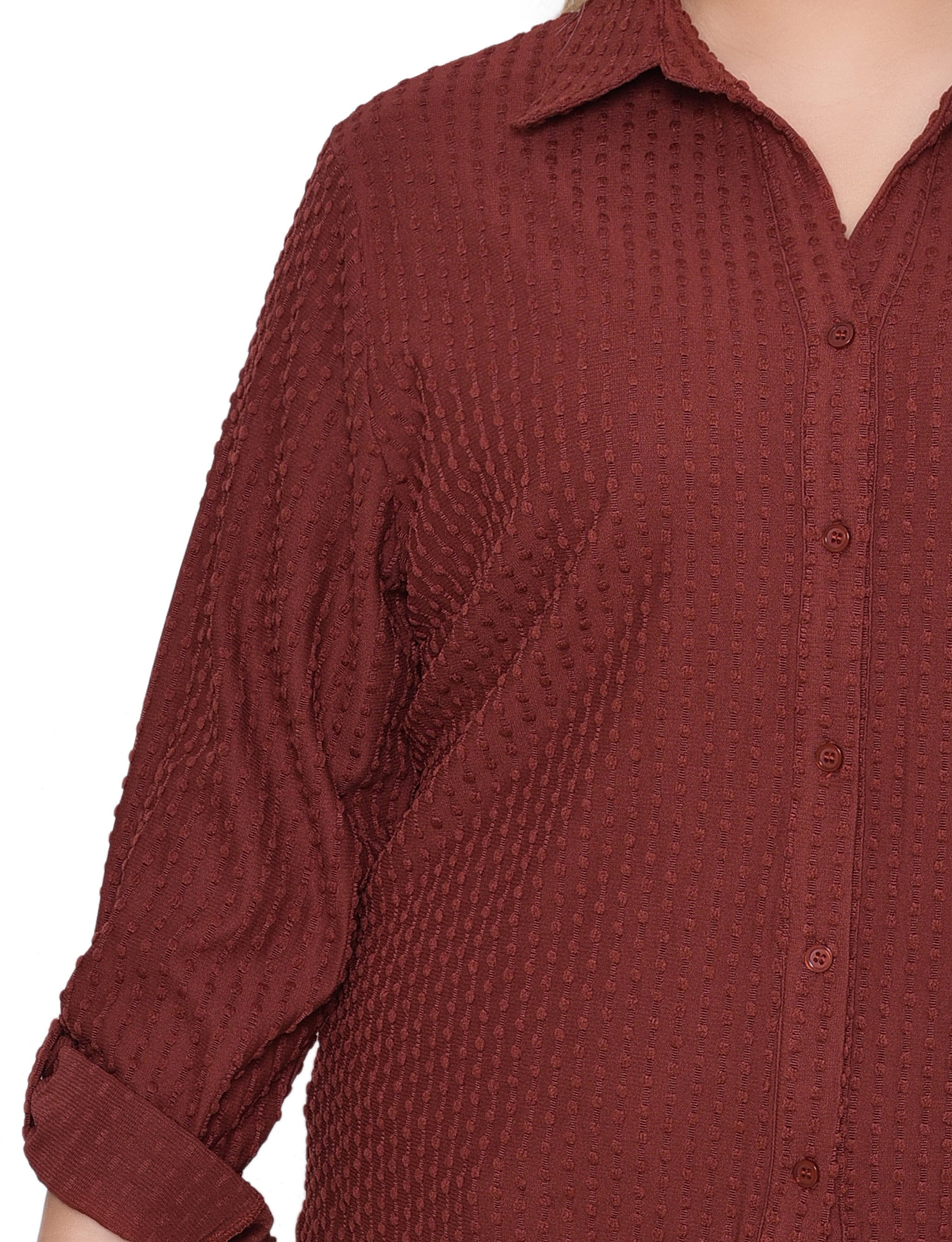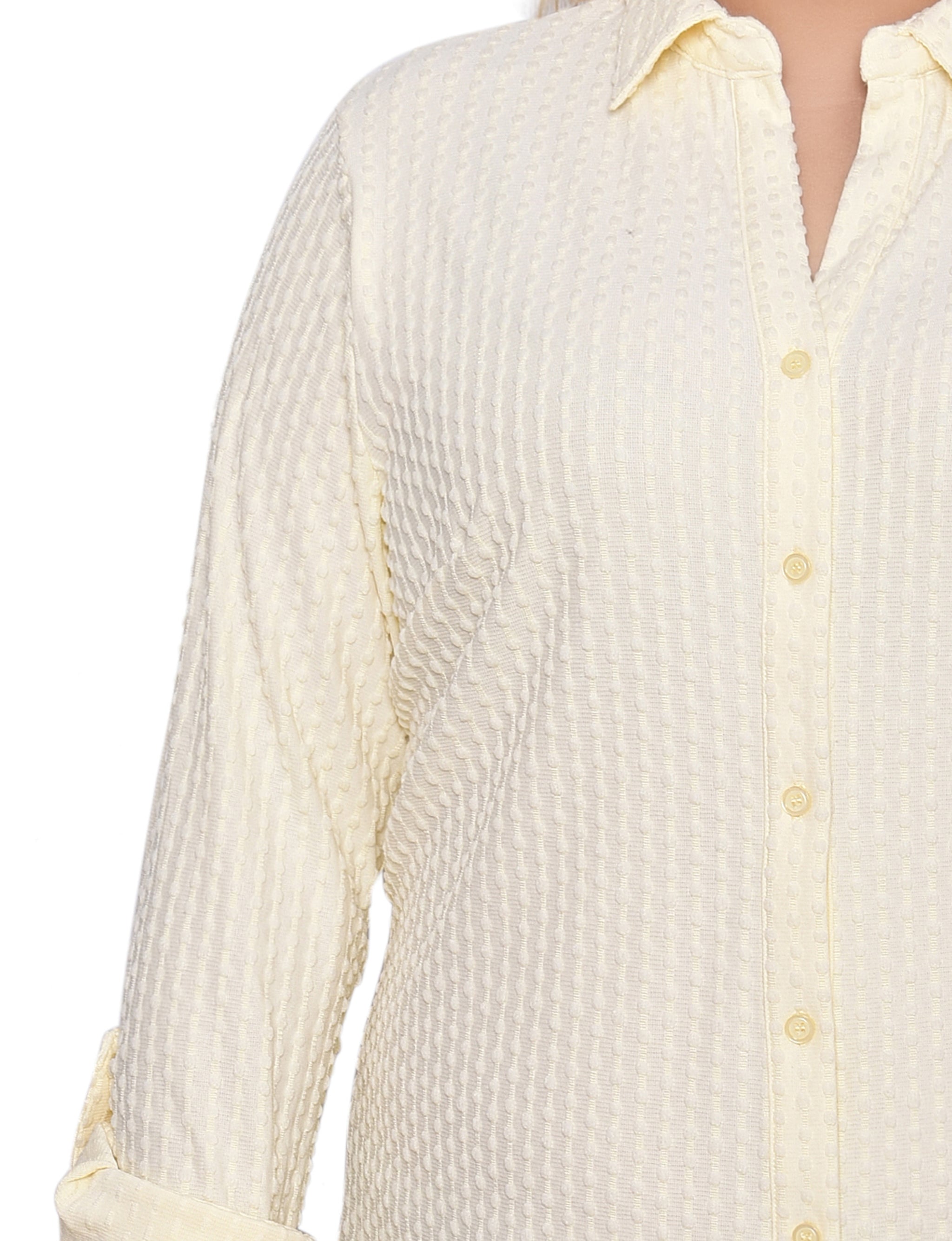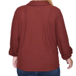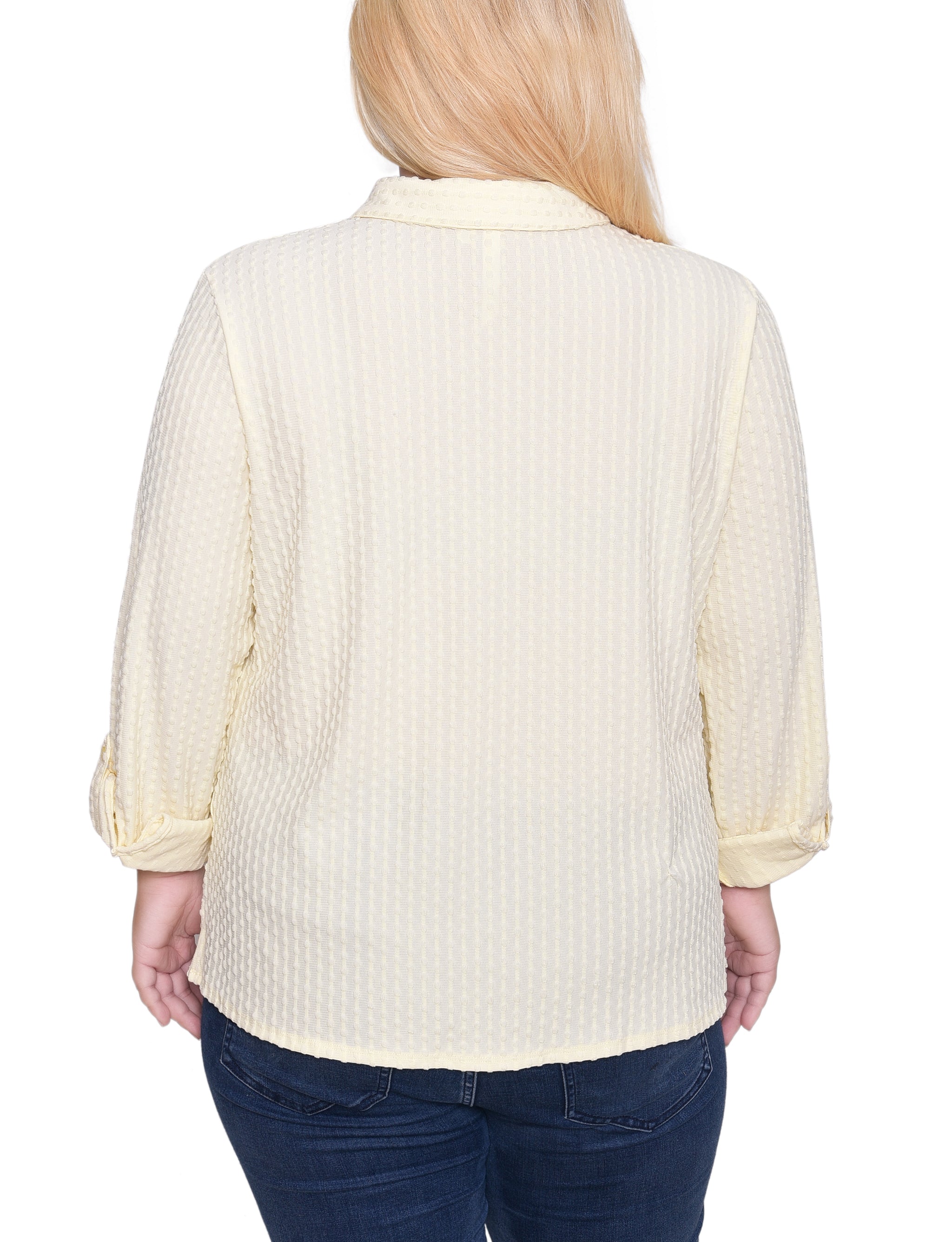 This textured knit top from NY Collection offers a classic button-down silhouette with a soft, stretch fabric that provides all-day comfort. Designed with long sleeves and a crisp collar, it’s perfect for both office wear and casual outings.