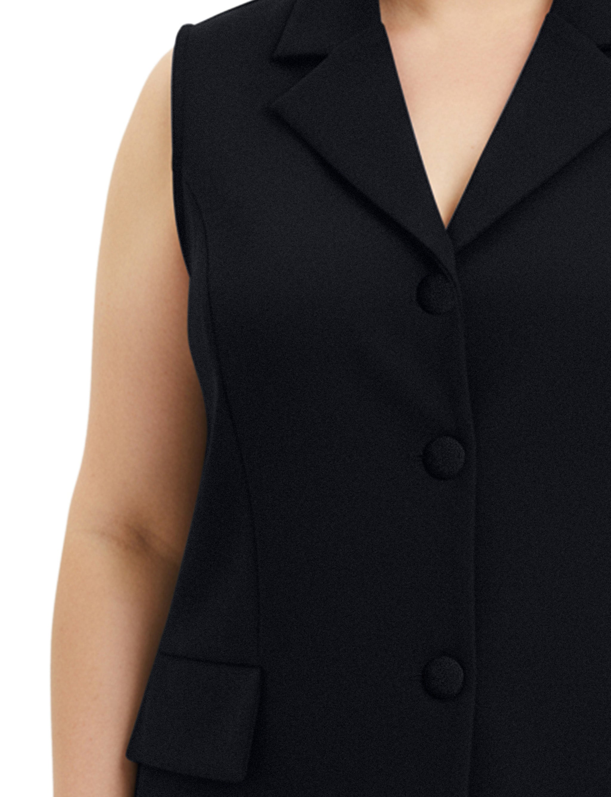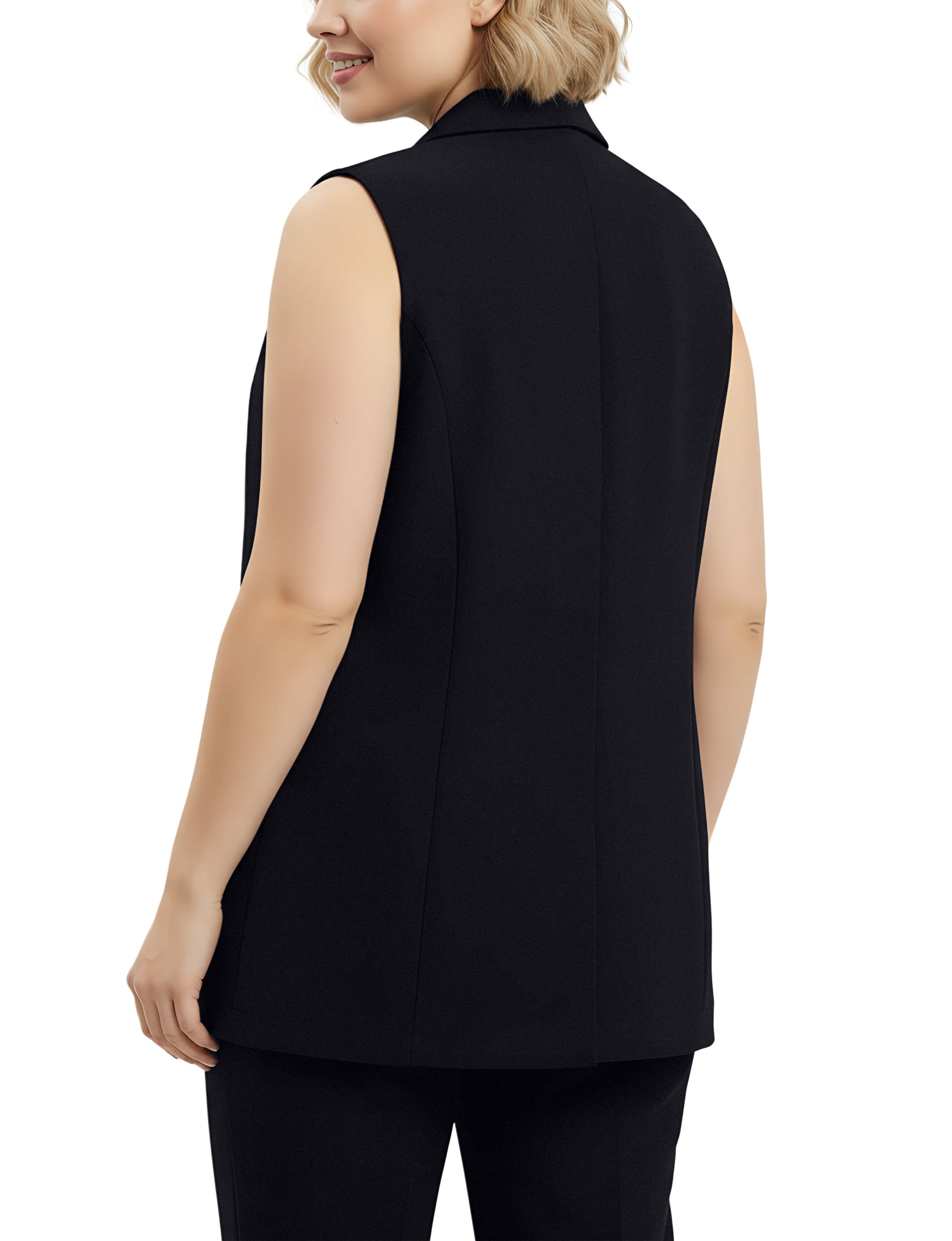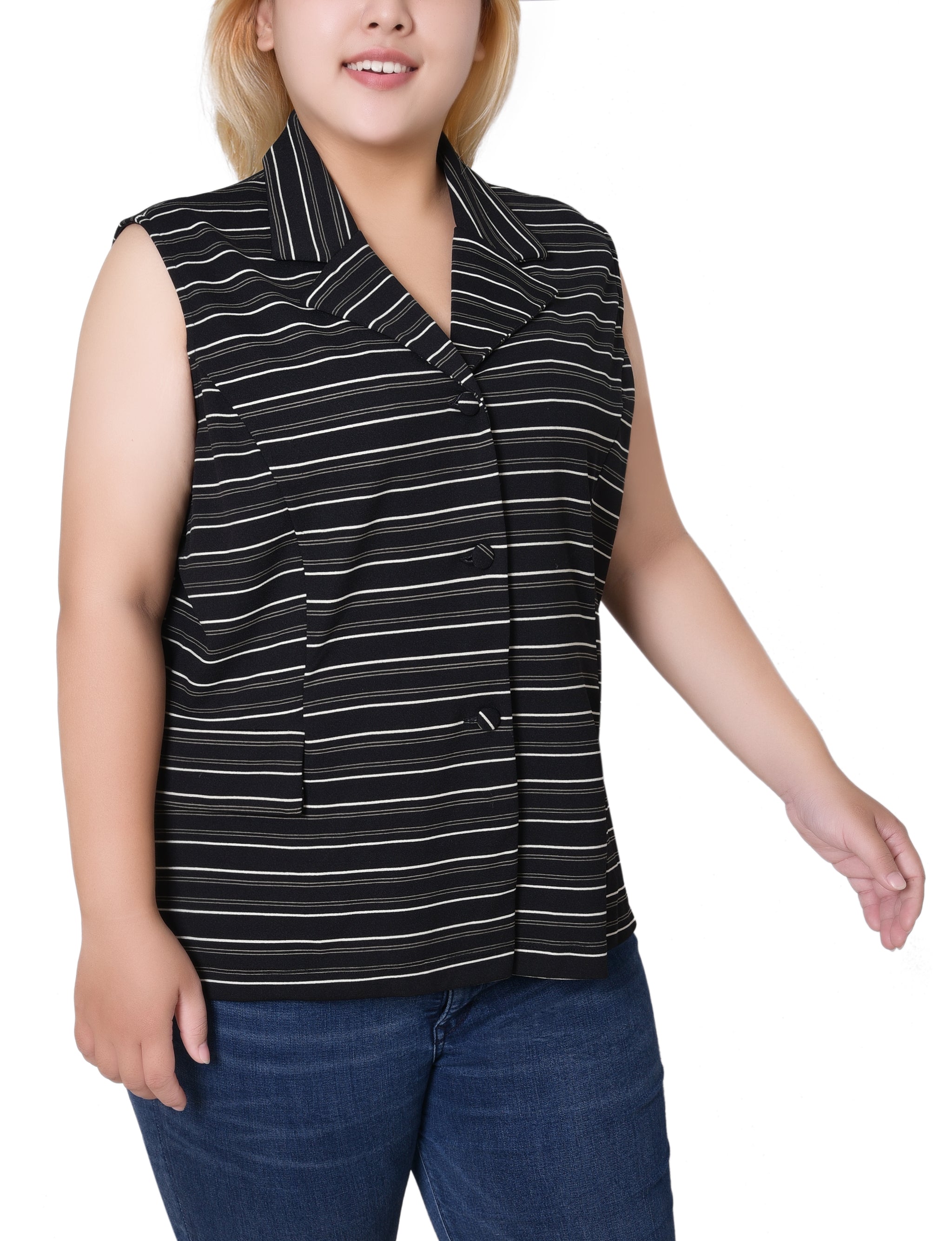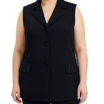 This tailored scuba vest from NY Collection features a sleek, sleeveless design with a notched collar and button-front closure for a polished look. Finished with flap pockets, it’s a versatile layering piece that transitions effortlessly from work to weekend.