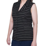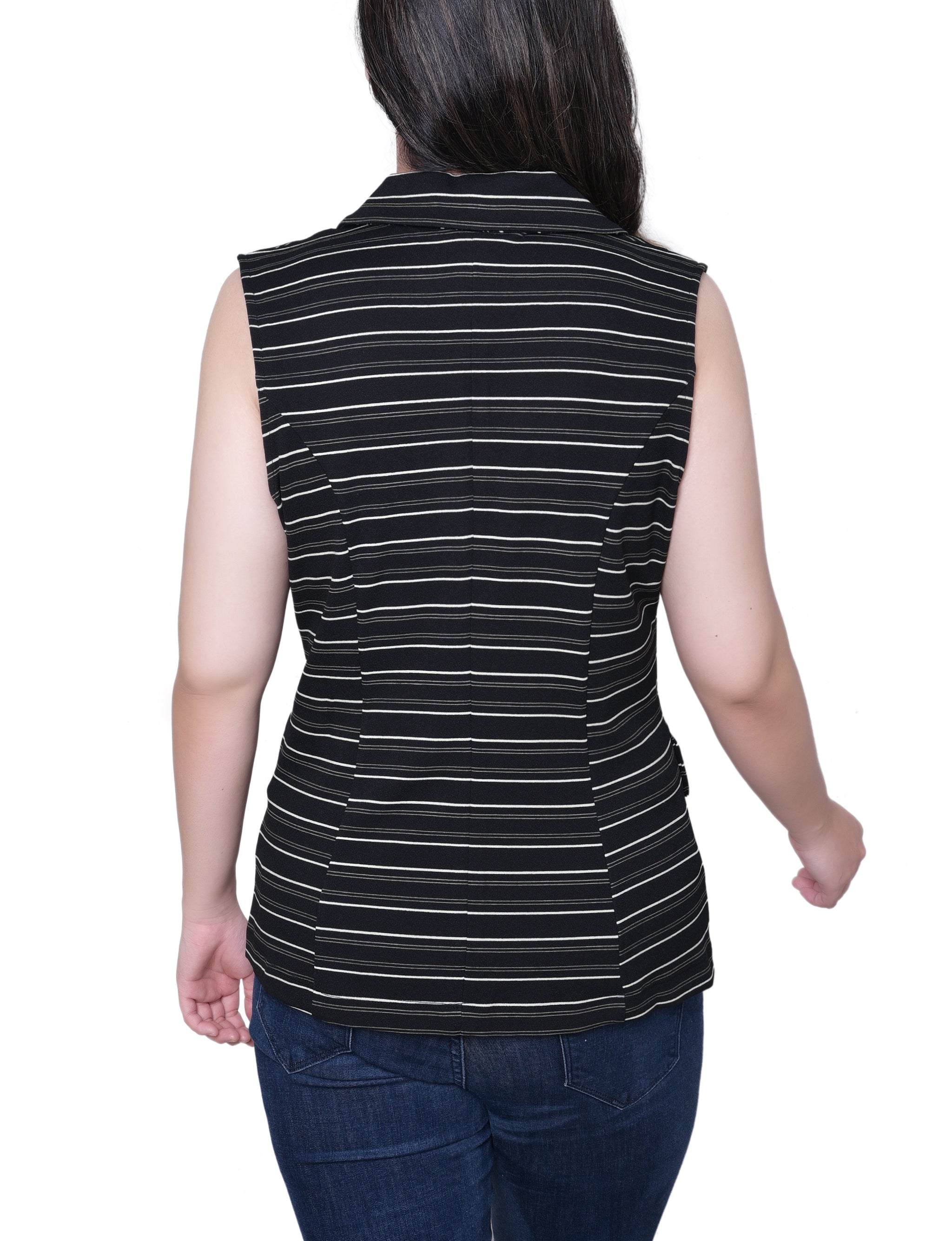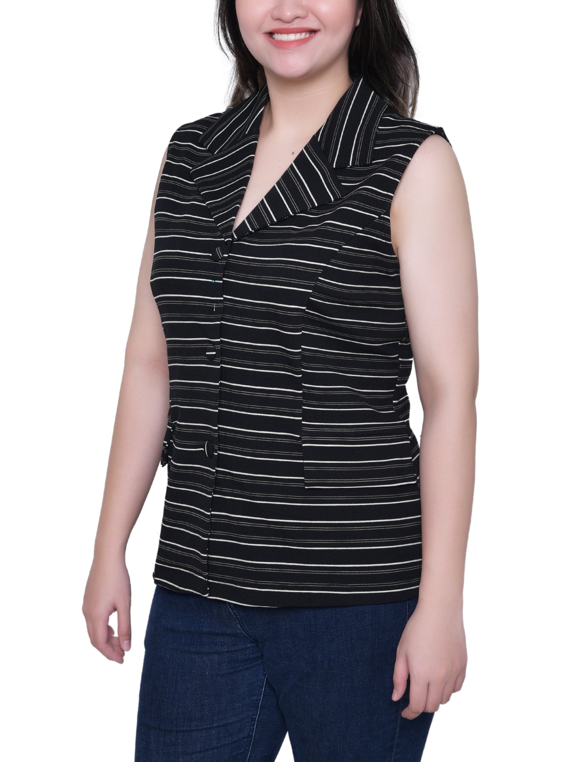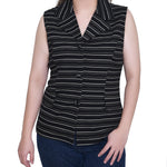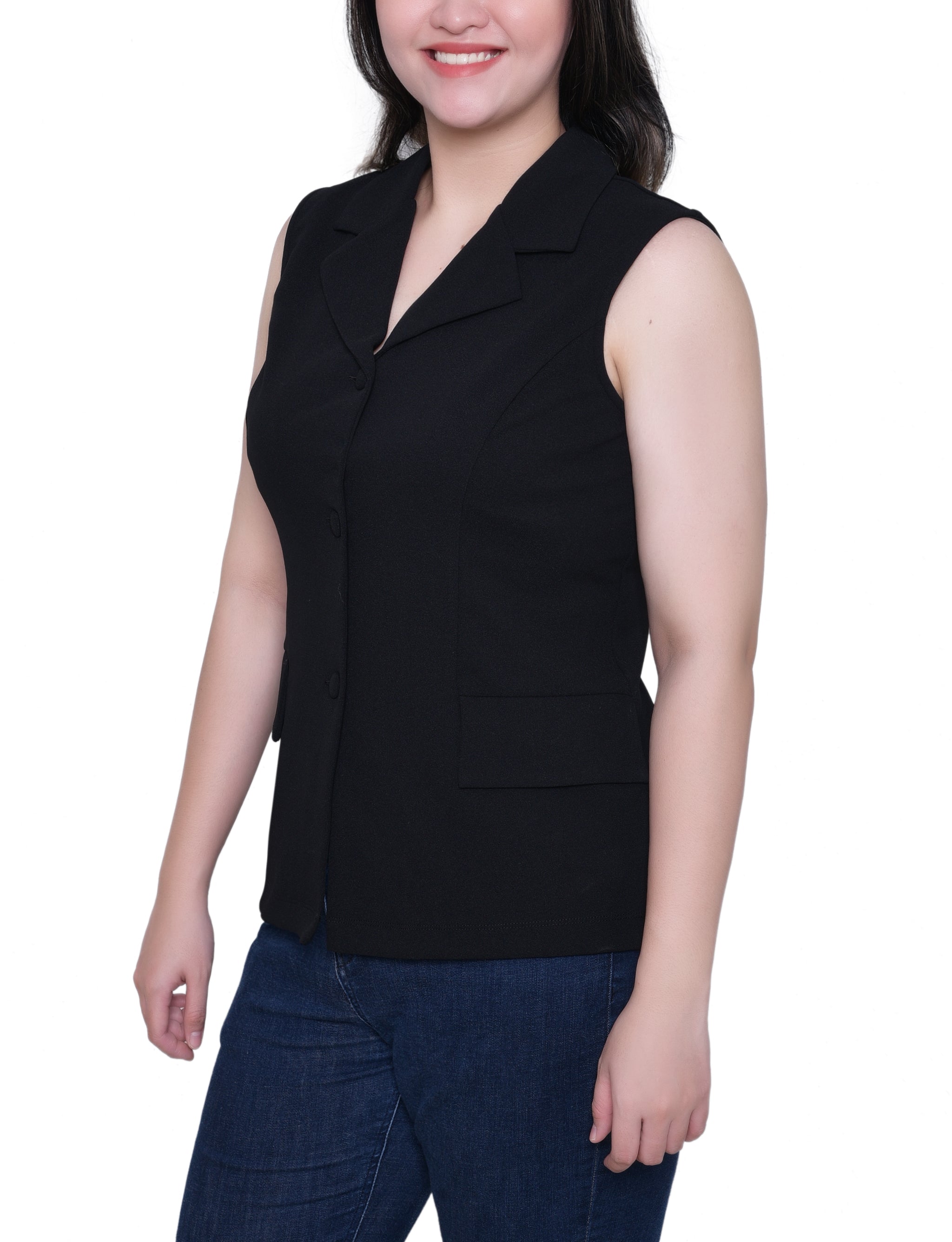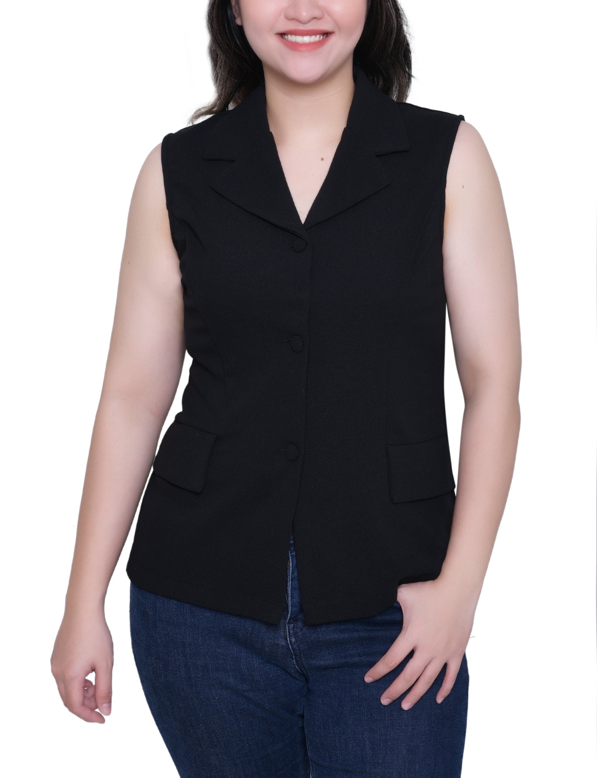 This tailored scuba vest from NY Collection features a sleek, sleeveless design with a notched collar and button-front closure for a polished look. Finished with flap pockets, it’s a versatile layering piece that transitions effortlessly from work to weekend.