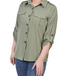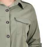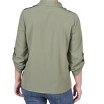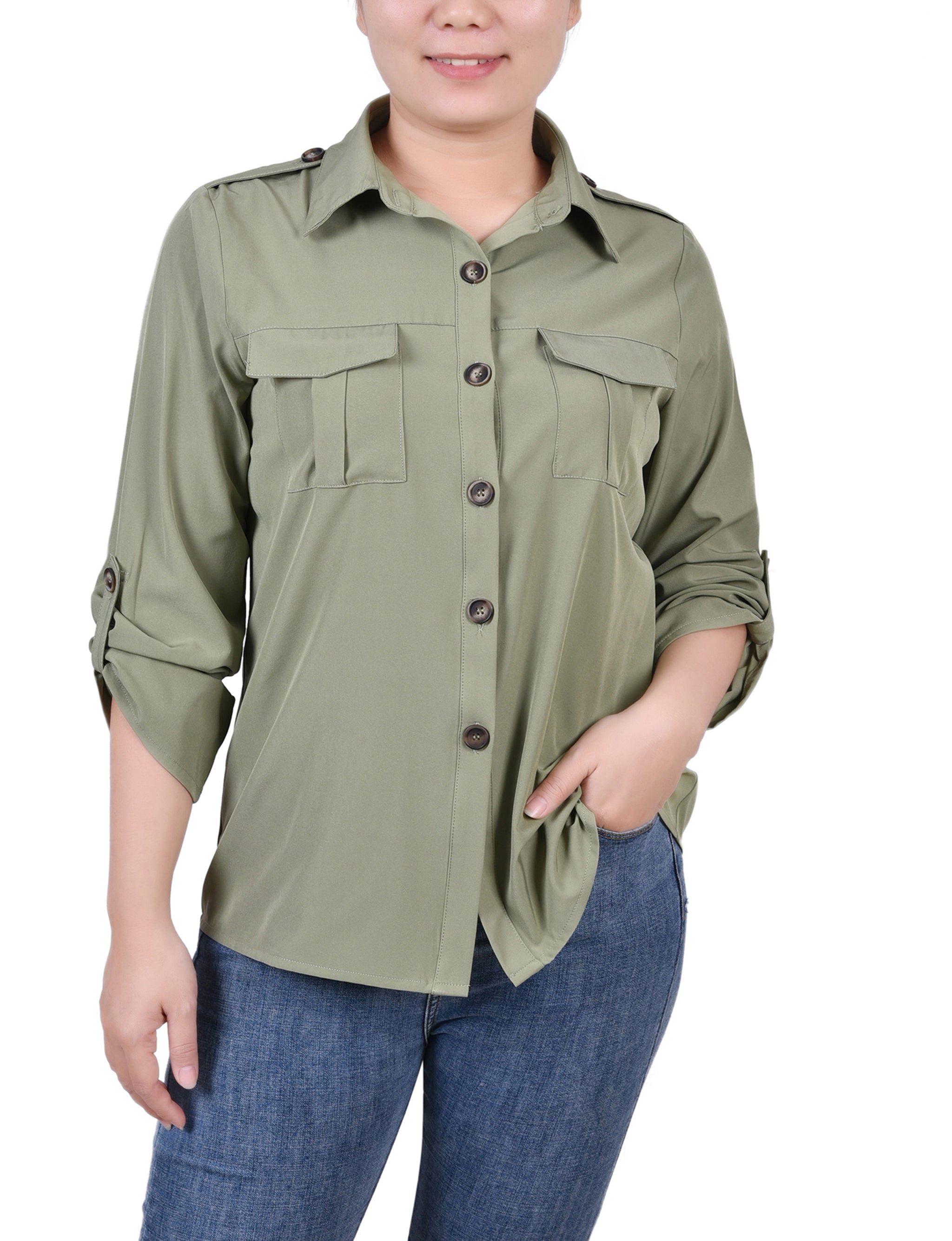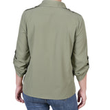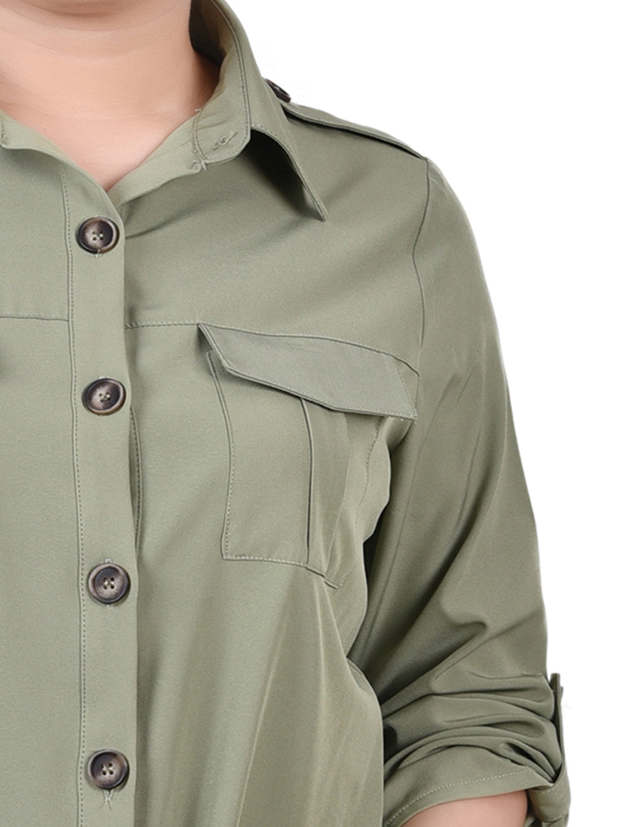 This classic silhouette has been updated by adding shoulder epaulettes and box pleated pockets.