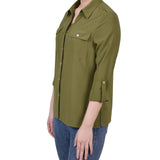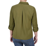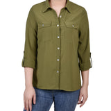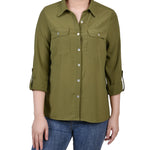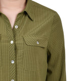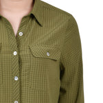 Classic styling updated with it's windowpane fabric. Roll tab sleeves makes this a versatile blouse to take you through the seasons.