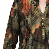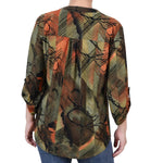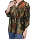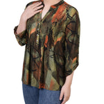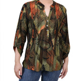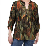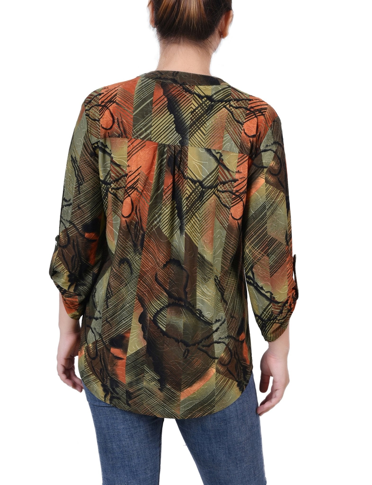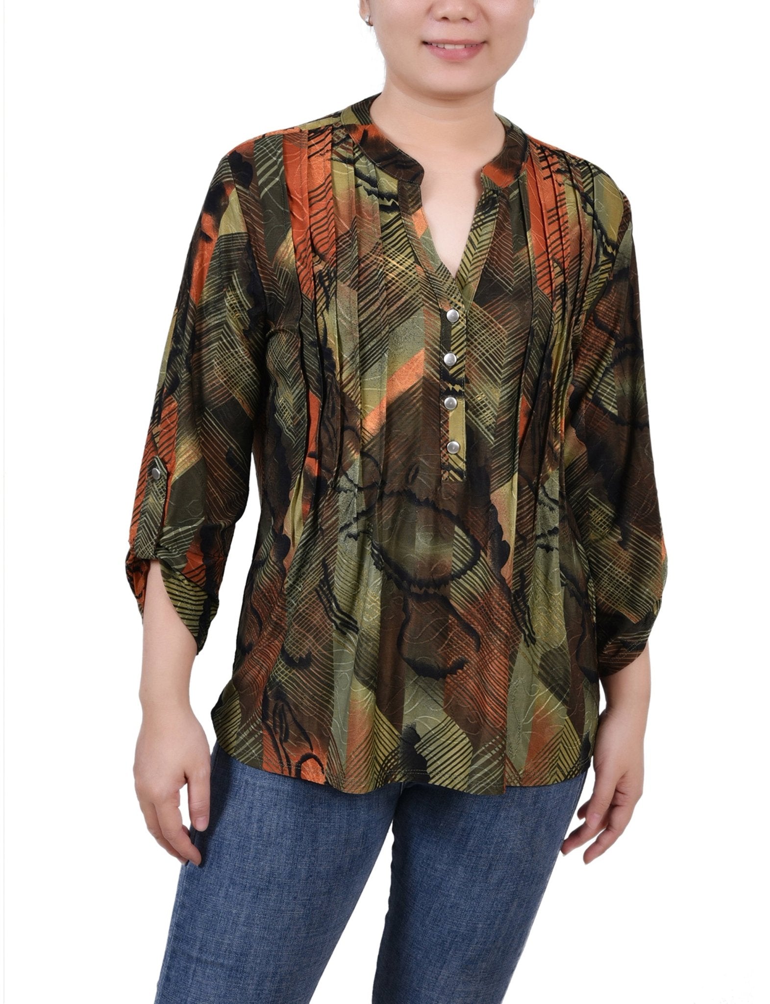 With 3/4 roll tab sleeves and a button up detail, this top is flattering on any woman.