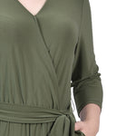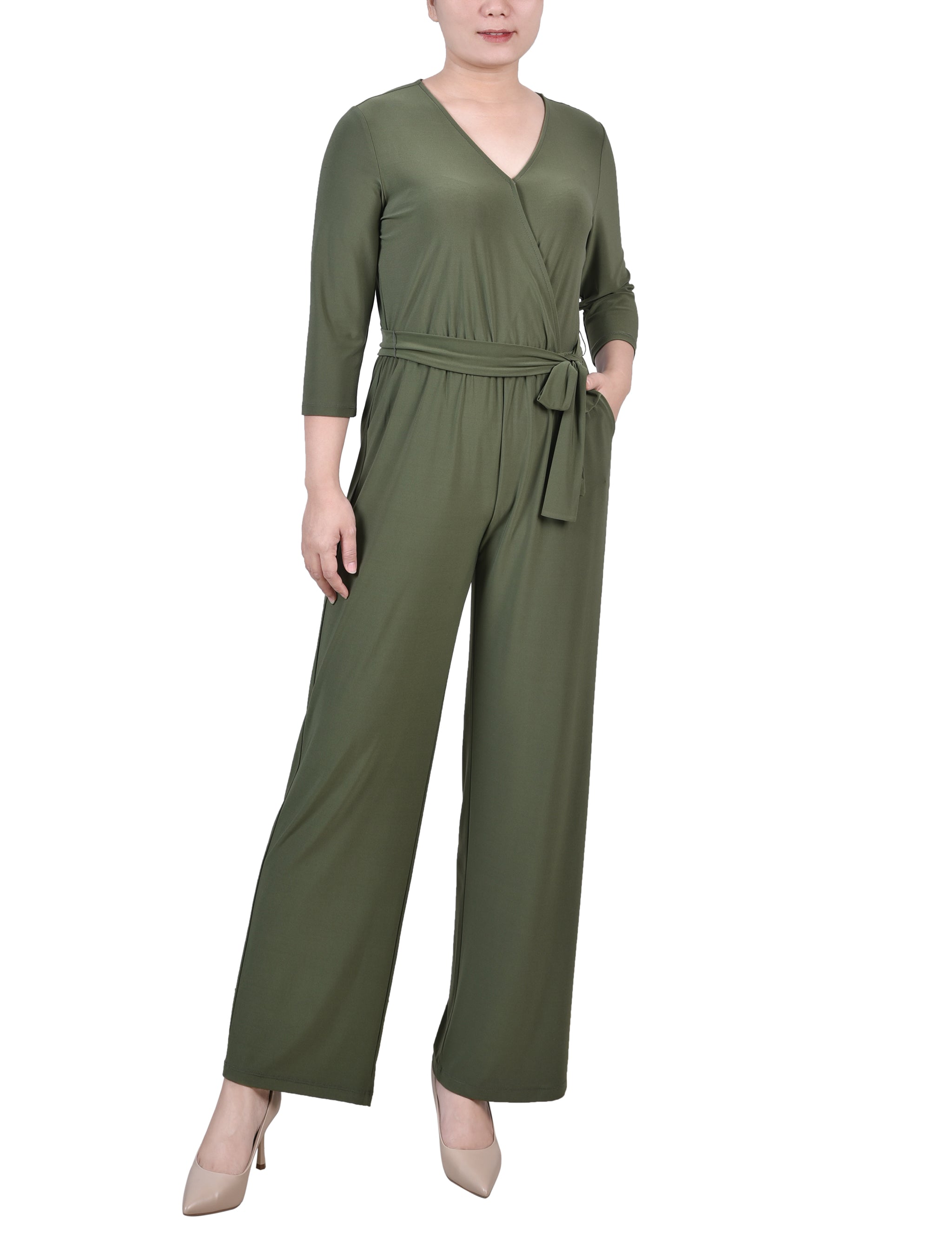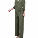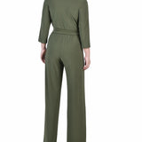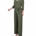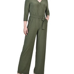 Olive Short 3/4 Sleeve Belted Jumpsuit - Petite – Dressbarn