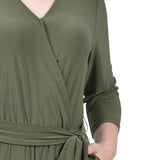 Olive Short 3/4 Sleeve Belted Jumpsuit - Petite