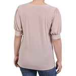 Oxford Tan Short Sleeve Balloon Sleeve Top With Hardware