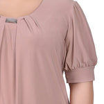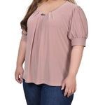 Oxford Tan Short Sleeve Balloon Sleeve Top With Hardware - Plus