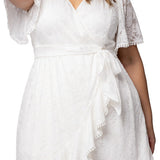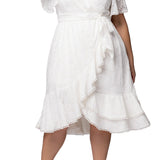 Palermo Lace Faux Wrap Cocktail Dress, White - Plus