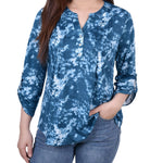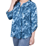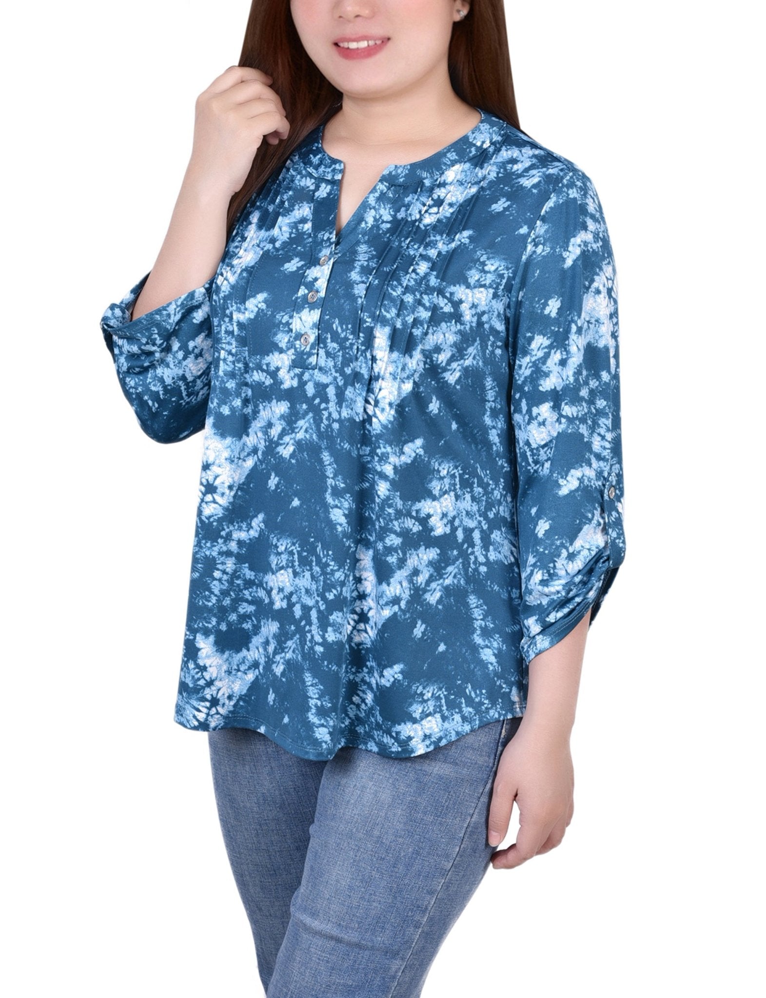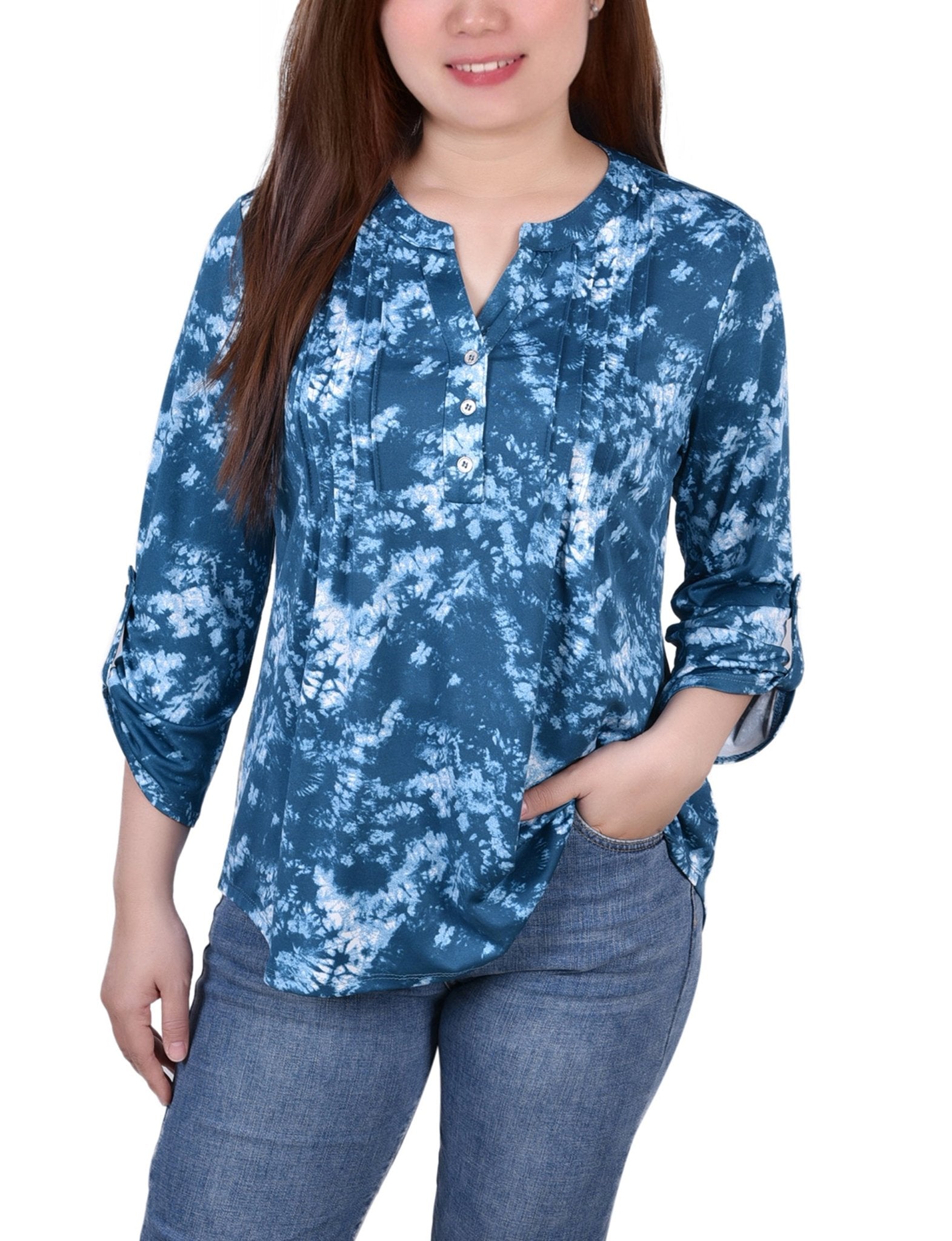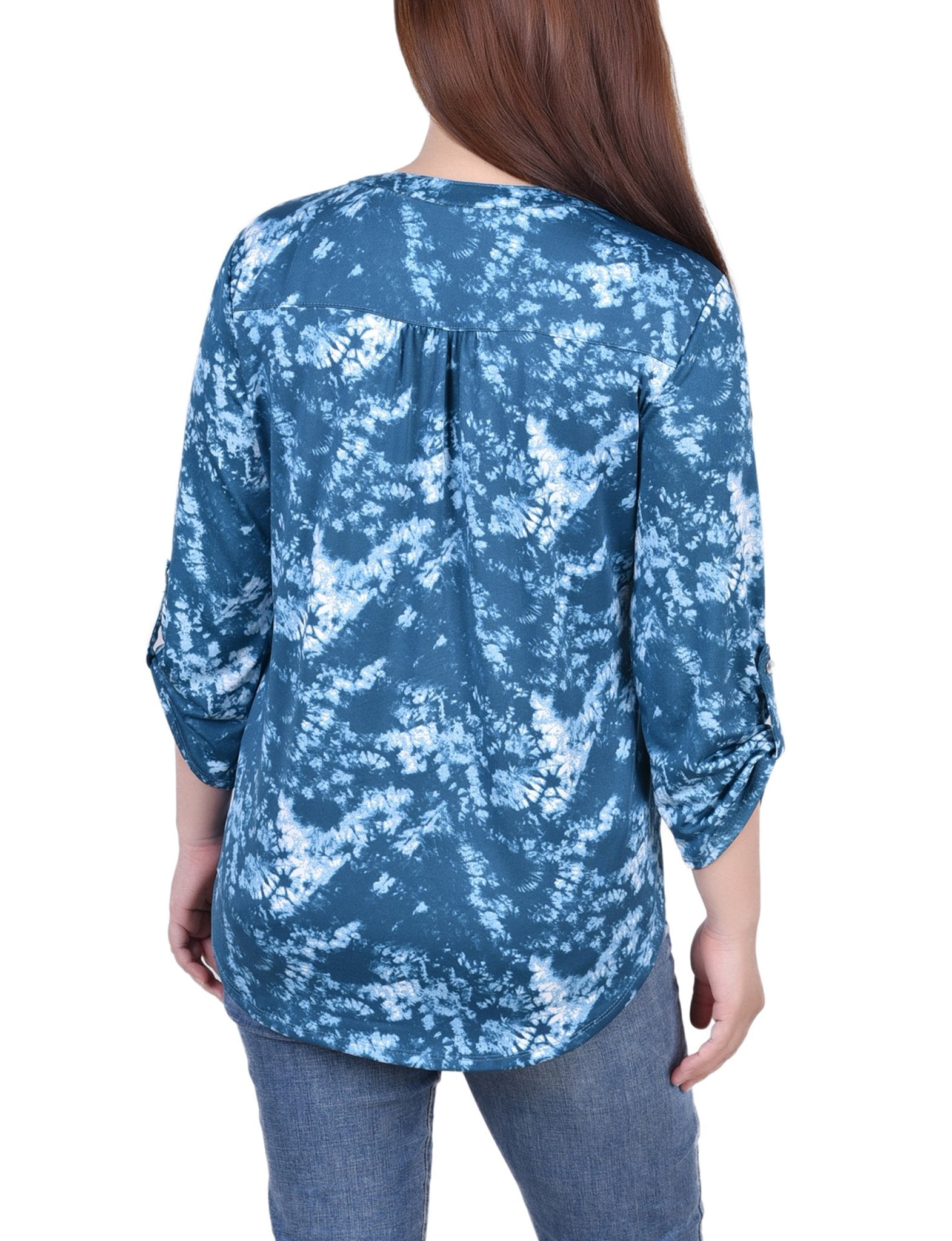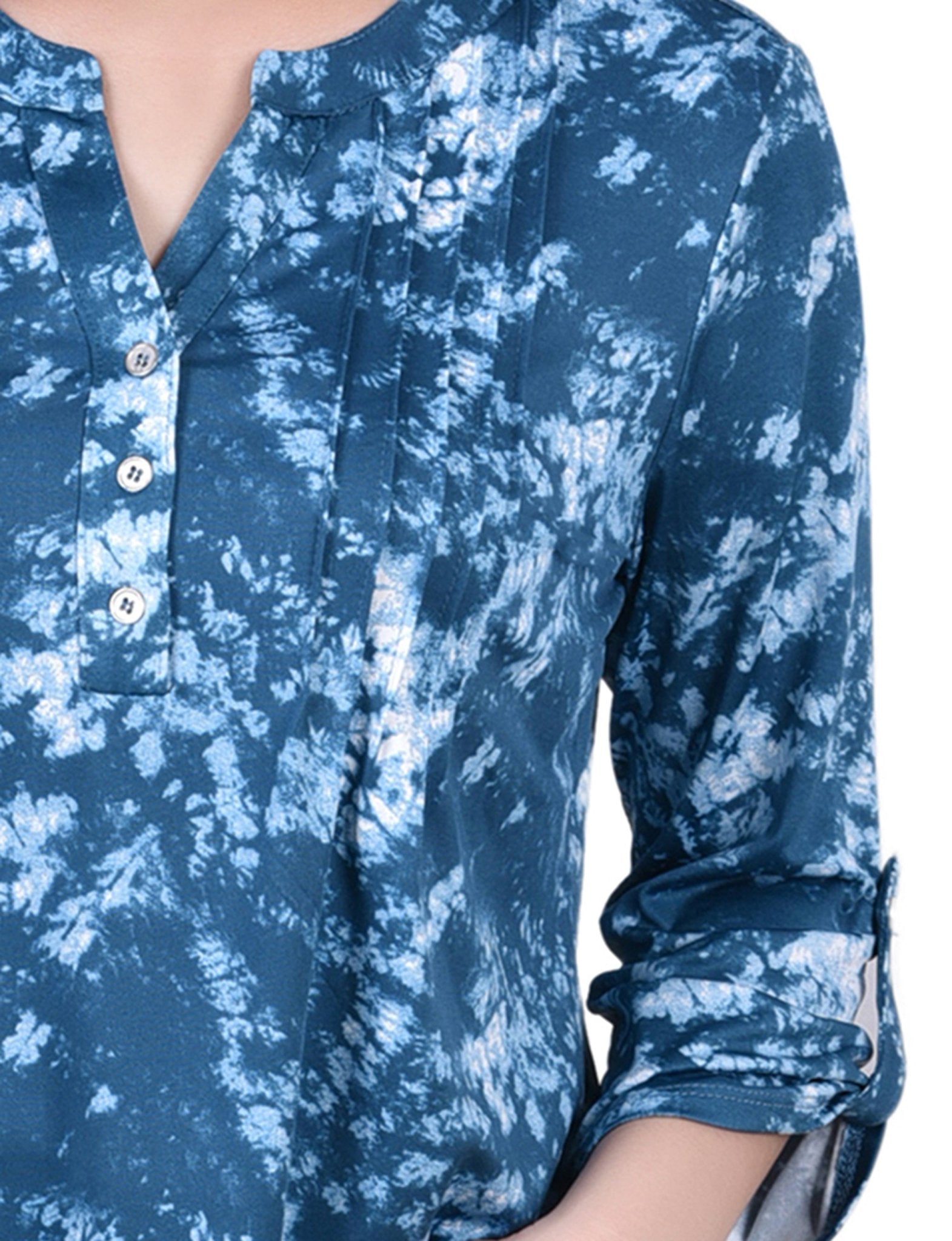 Perfect for the office or a day of errands, this comfortable and cute top has roll tab sleeve accent and a Y-neckline.