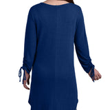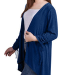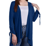 With rouched sleeve details and a high low hem, thiscardigan is a twist on a classic layering piece.