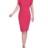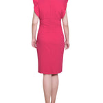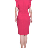 Turn heads in this sleek sheath dress, designed with soft ruffled cap sleeves and a flattering, body-skimming fit. Perfect for workdays or weekend events.