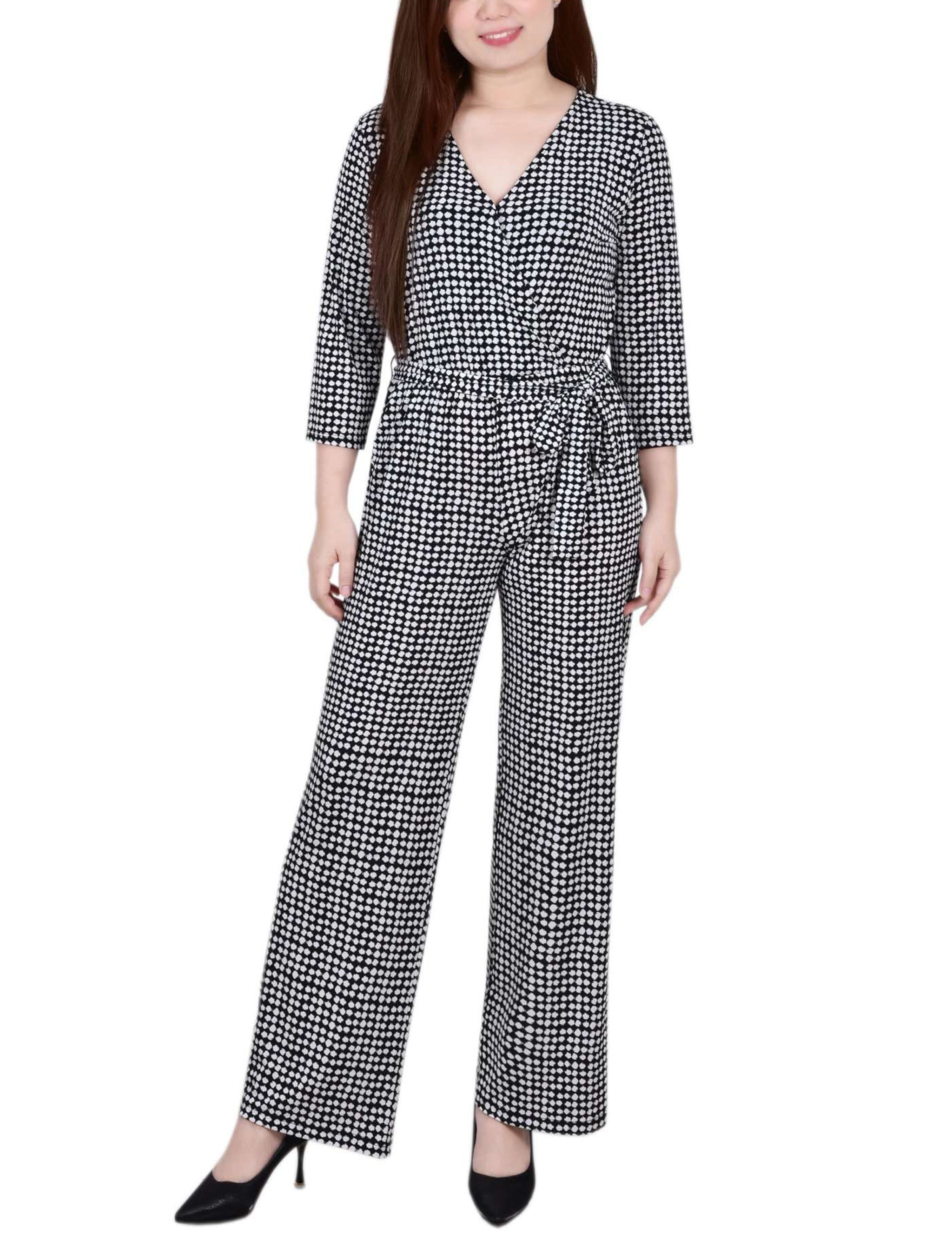 Polka Dot 3/4 Sleeve Belted Jumpsuit – Dressbarn
