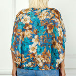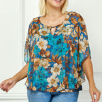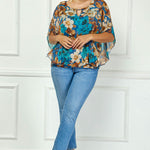Poncho Tank Cutout Trim Mix Media Blouse in Turquoise - Plus