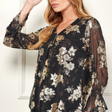 Beautiful Ruffle Smock Cuff Long Sleeve V-Neck Lined Blouse. It’s Sheer Sleeve is Timeless and Elegant. It’s a Perfect Top for an Elevated Office Look or a Night Out. This Blouse is Lined and Easy to Wear.