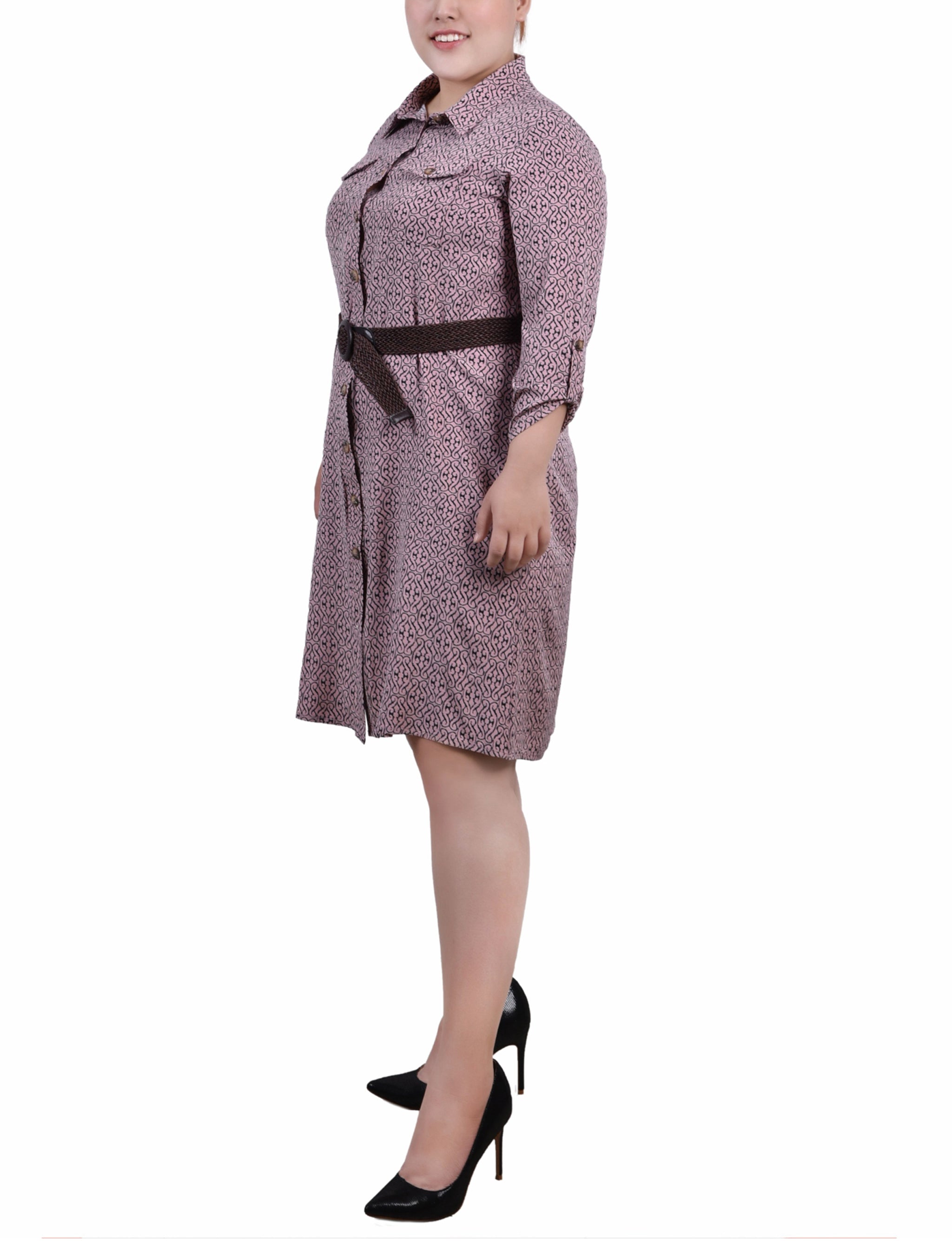 You'll always be in style with this classic shirt-dress with its full button front and belt.