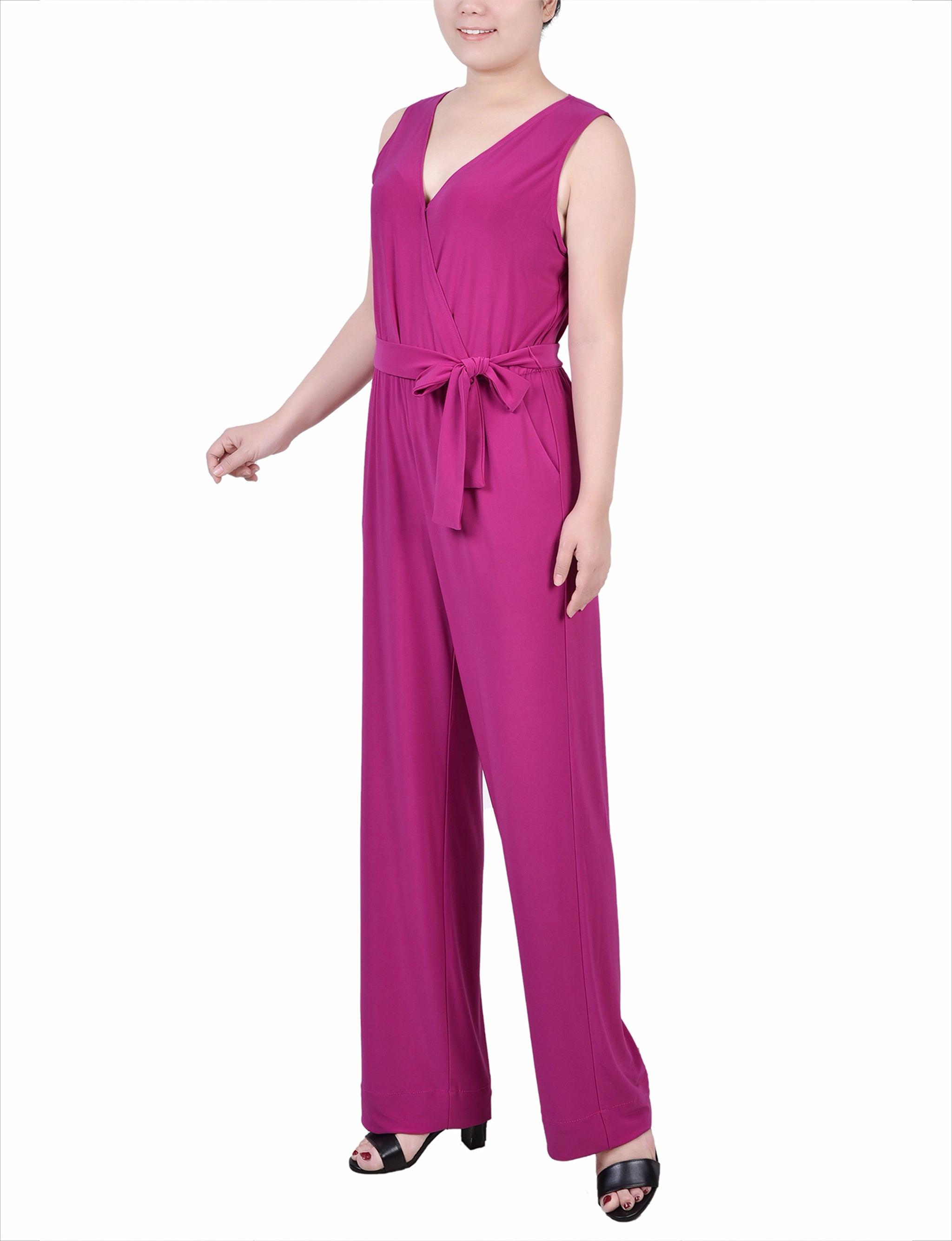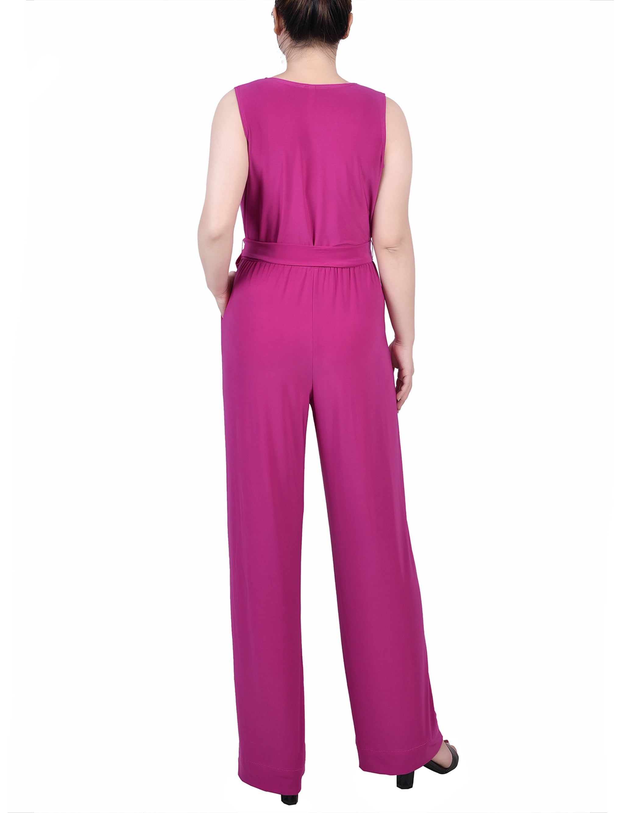 Purple Sleeveless Belted Jumpsuit - Petite – Dressbarn