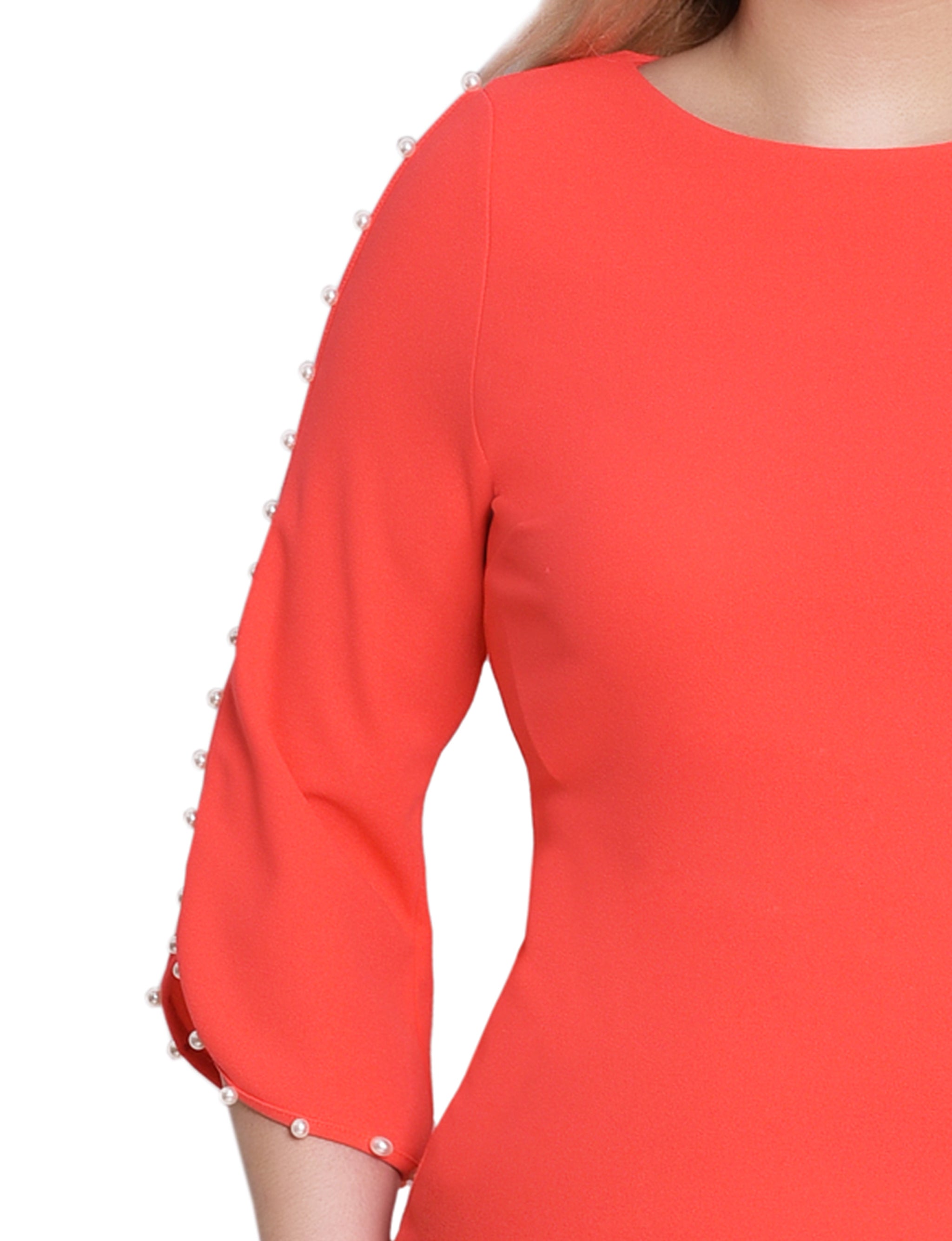 A classic silhouette crafted for a timeless look. The pearl detailing adds a special touch, and the scuba crepe fabric ensures comfort and durability.