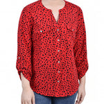 Red 3/4 Roll Tab Sleeve Mandarin Collar Blouse - Petite – Dressbarn