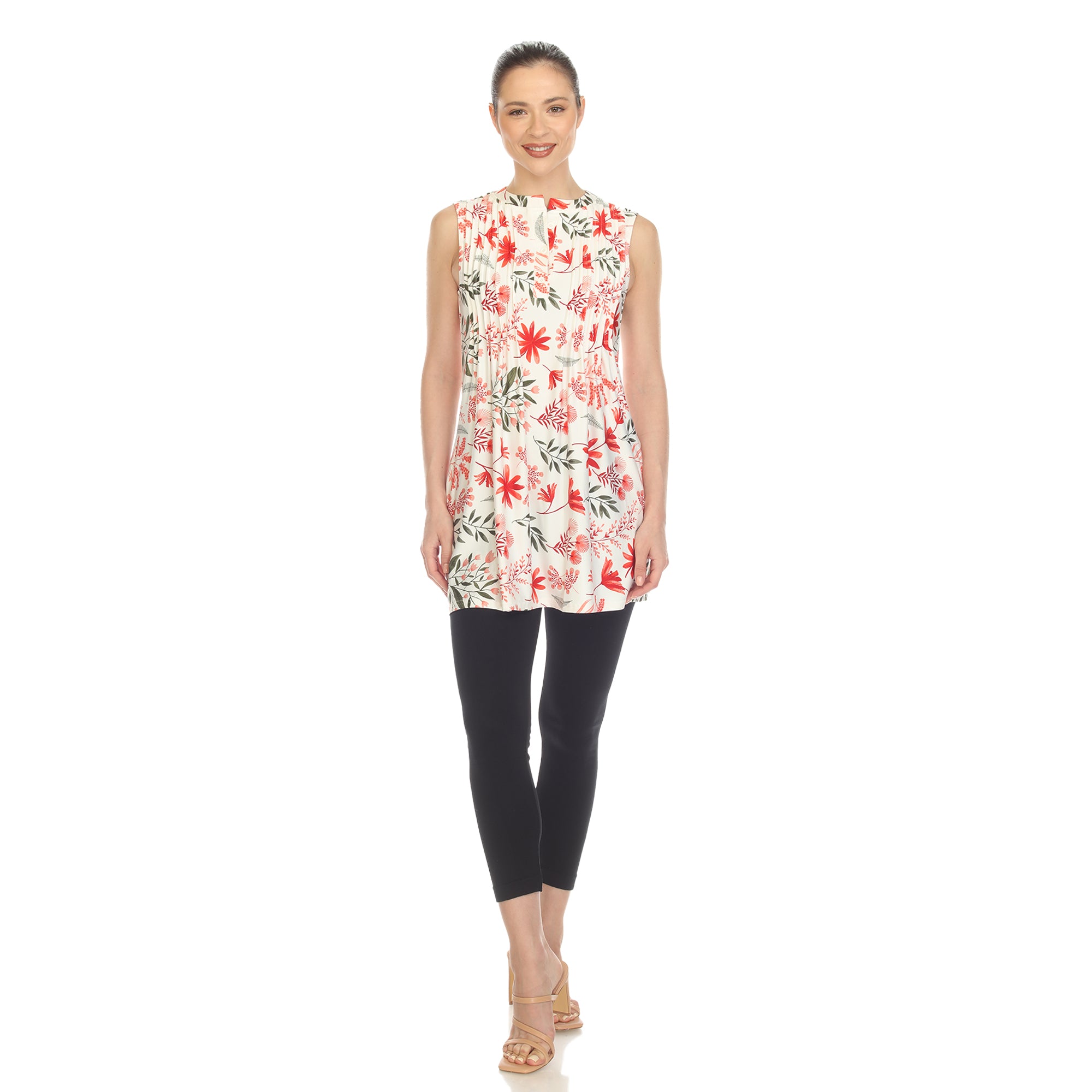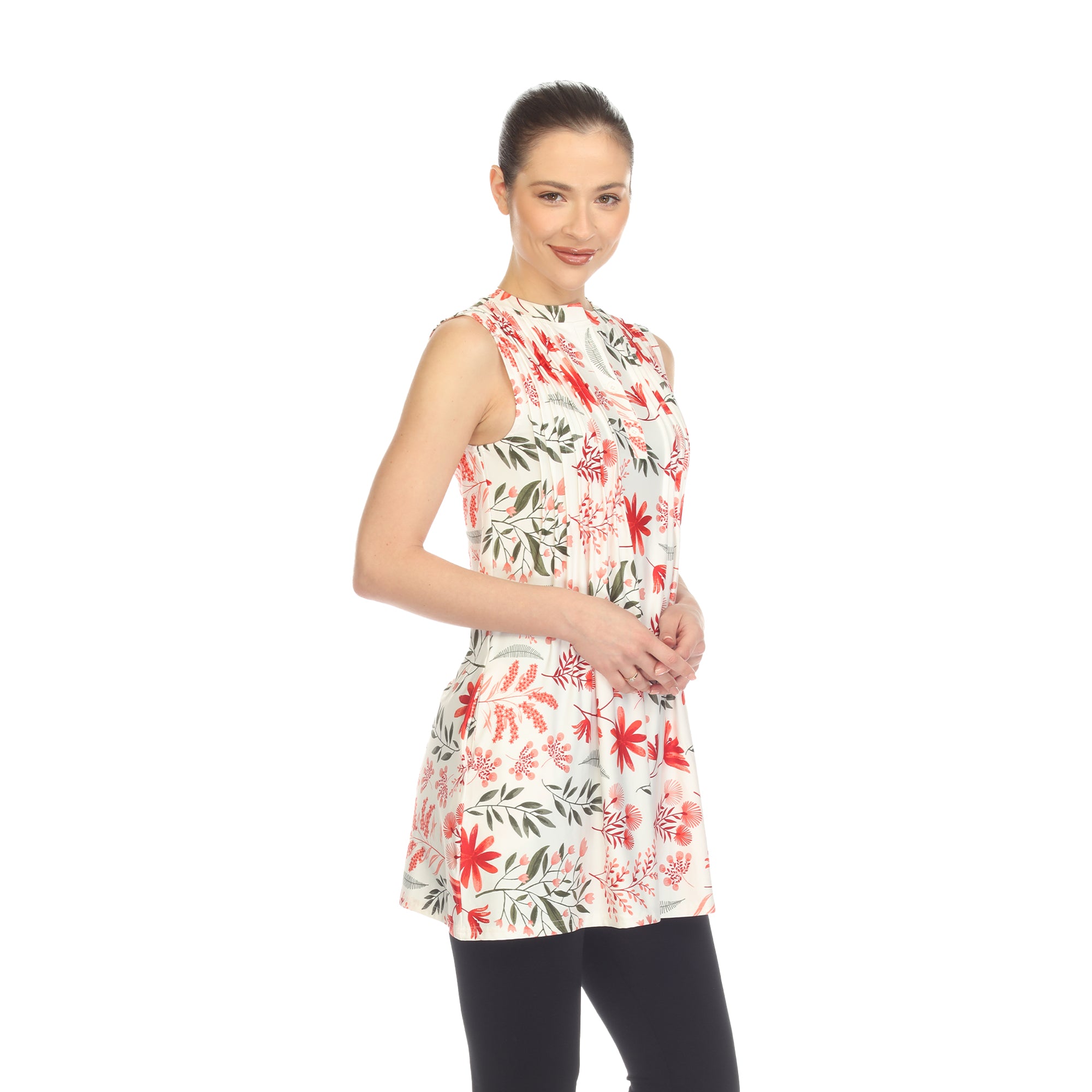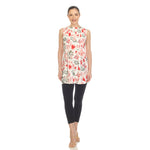 Red Floral Sleeveless Tunic Top