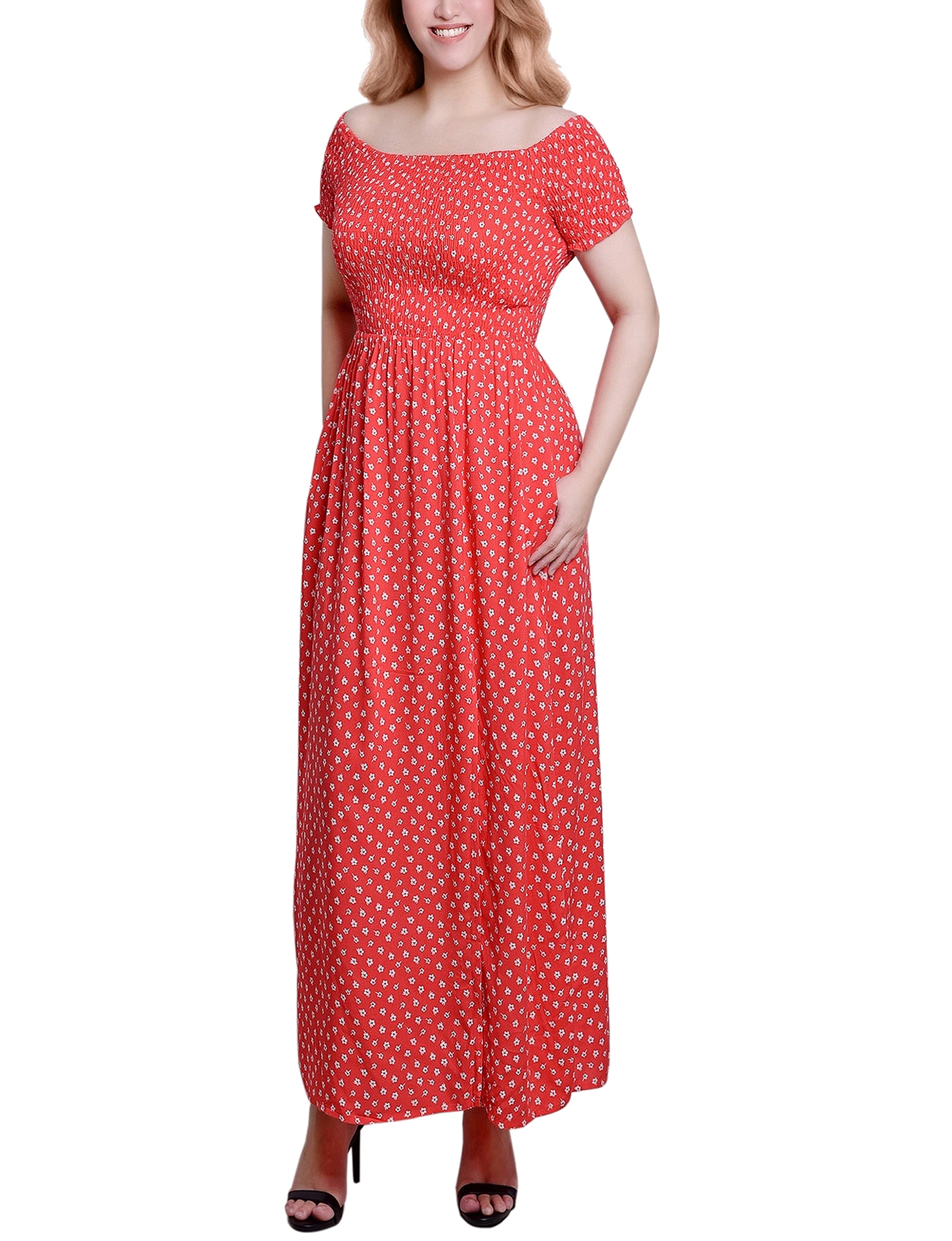 This smocked off-the-shoulder maxi dress is the perfect look for wherever the day takes you.